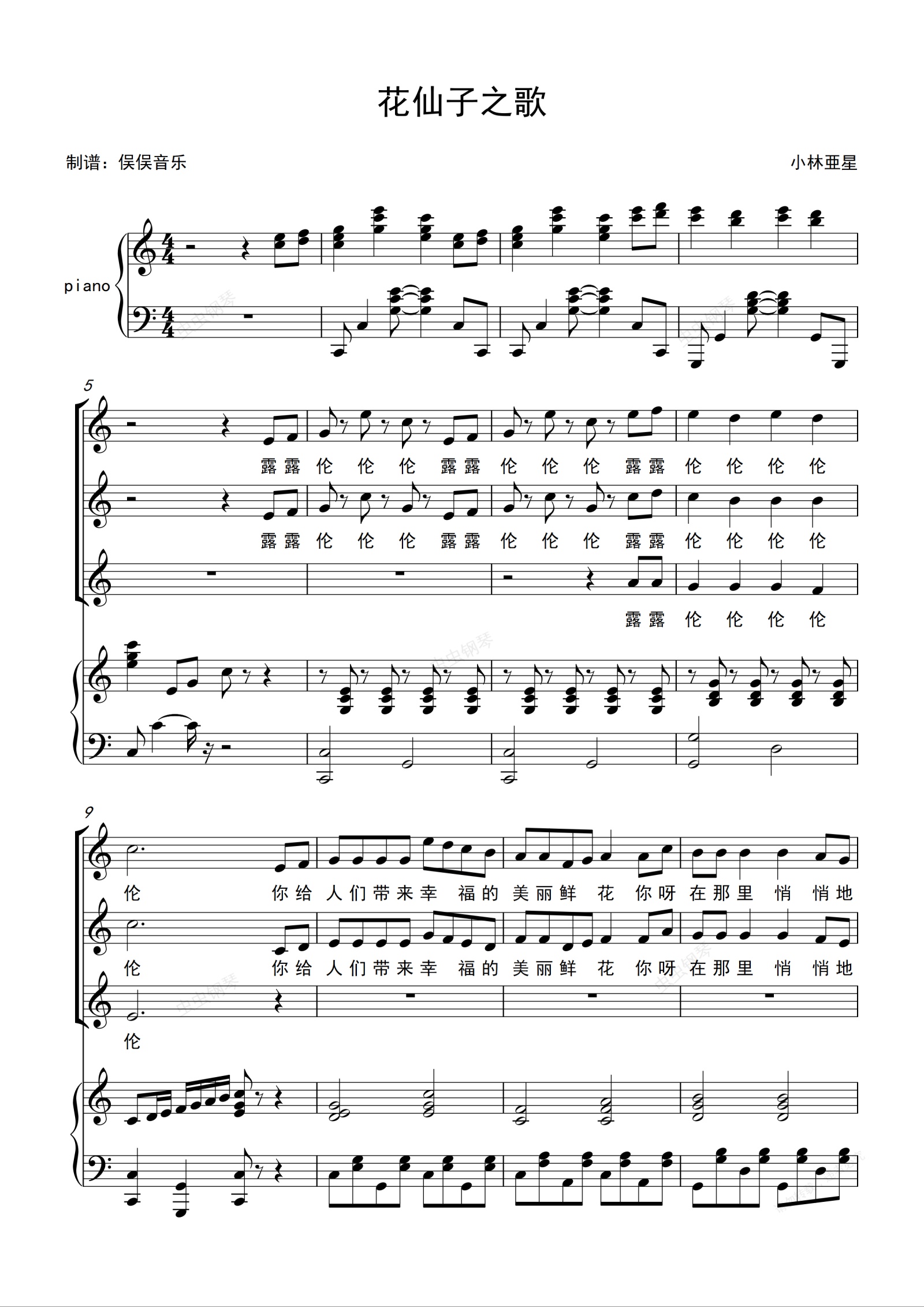 钢琴谱:花仙子之歌(合唱伴奏谱)