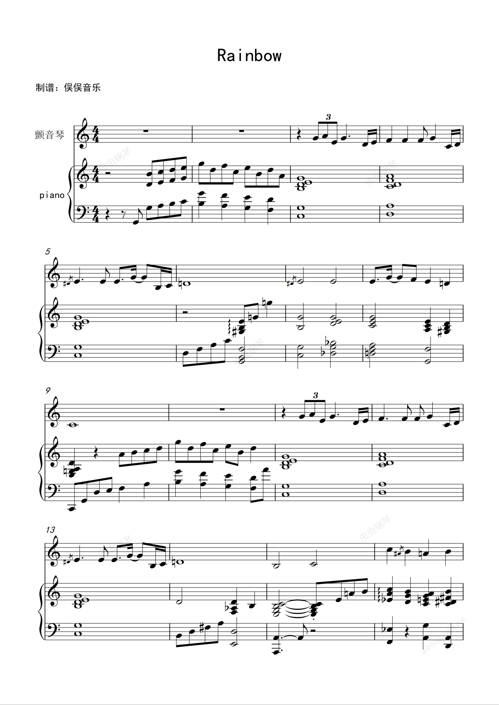 钢琴谱:浪漫爵士 - Rainbow(彩虹)
