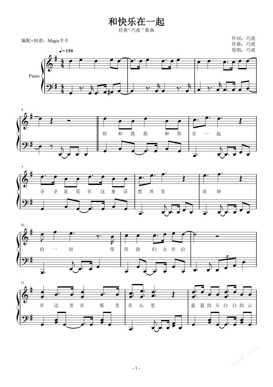 钢琴谱:<巧虎>和快乐在一起