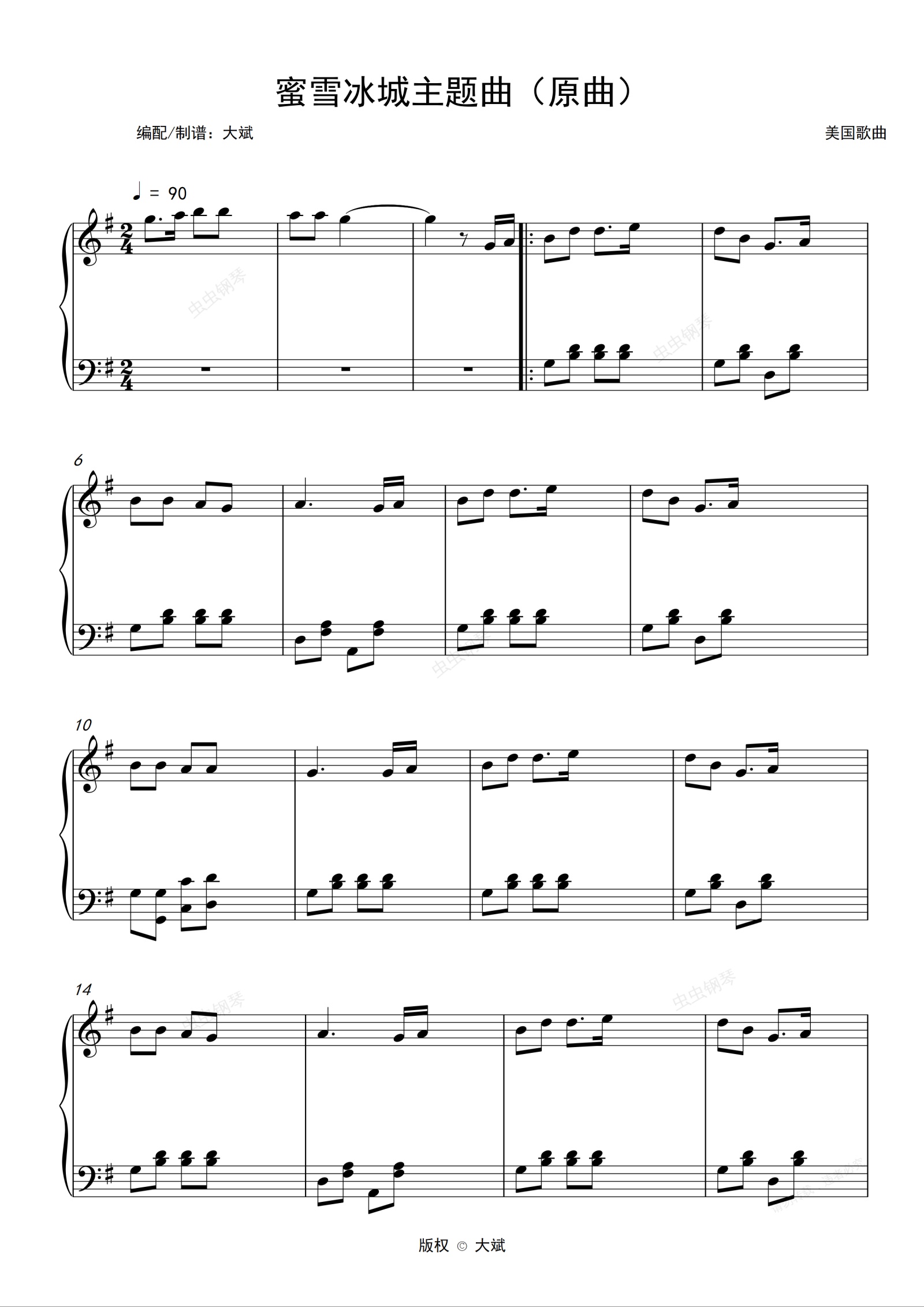 钢琴谱:蜜雪冰城主题曲