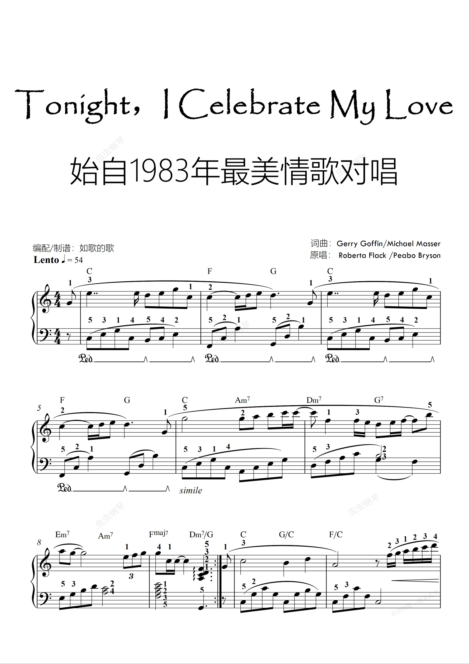钢琴谱:Tonight I Celebrate My Love/C调简化带指法&功能