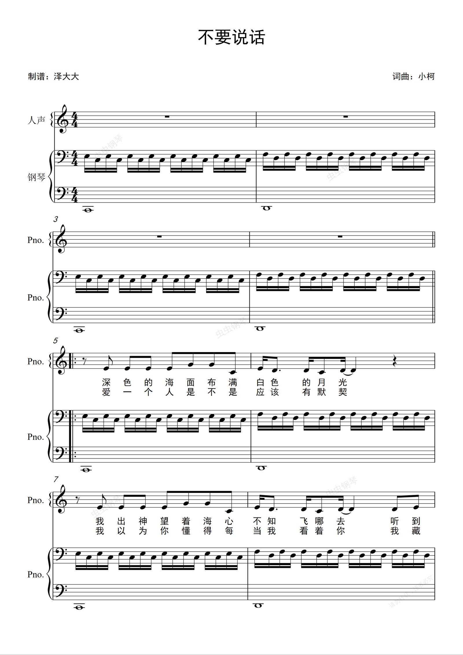 钢琴谱:不要说话【C调完美弹唱附词】泽大大 陈奕迅