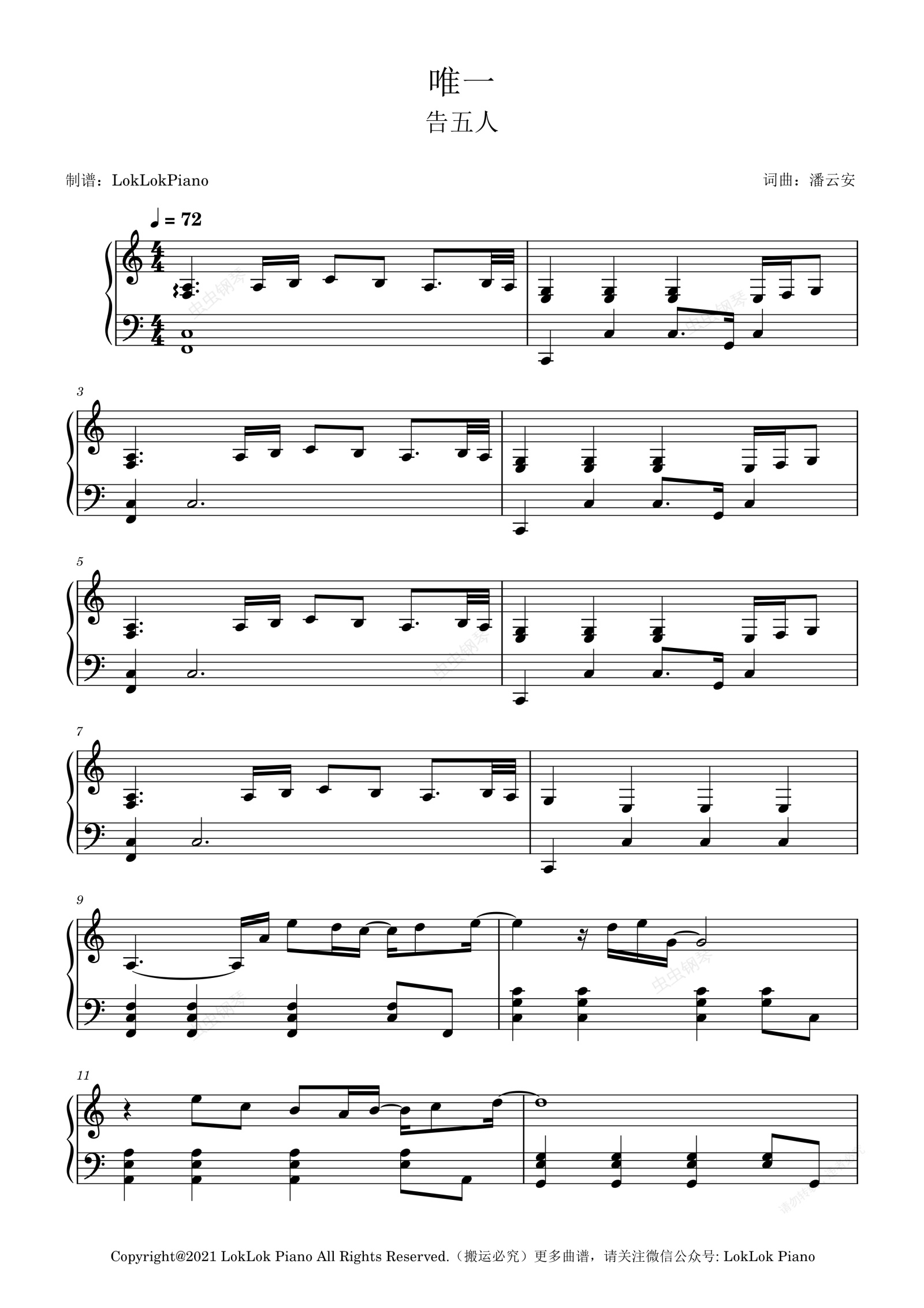 钢琴谱:告五人《唯一》| LokLok Piano演奏版