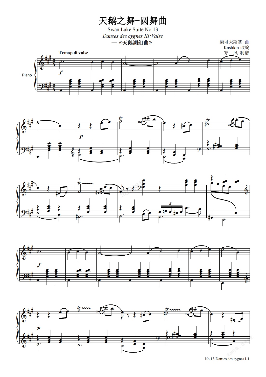 钢琴谱:天鹅湖组曲No.13-III-圆舞曲