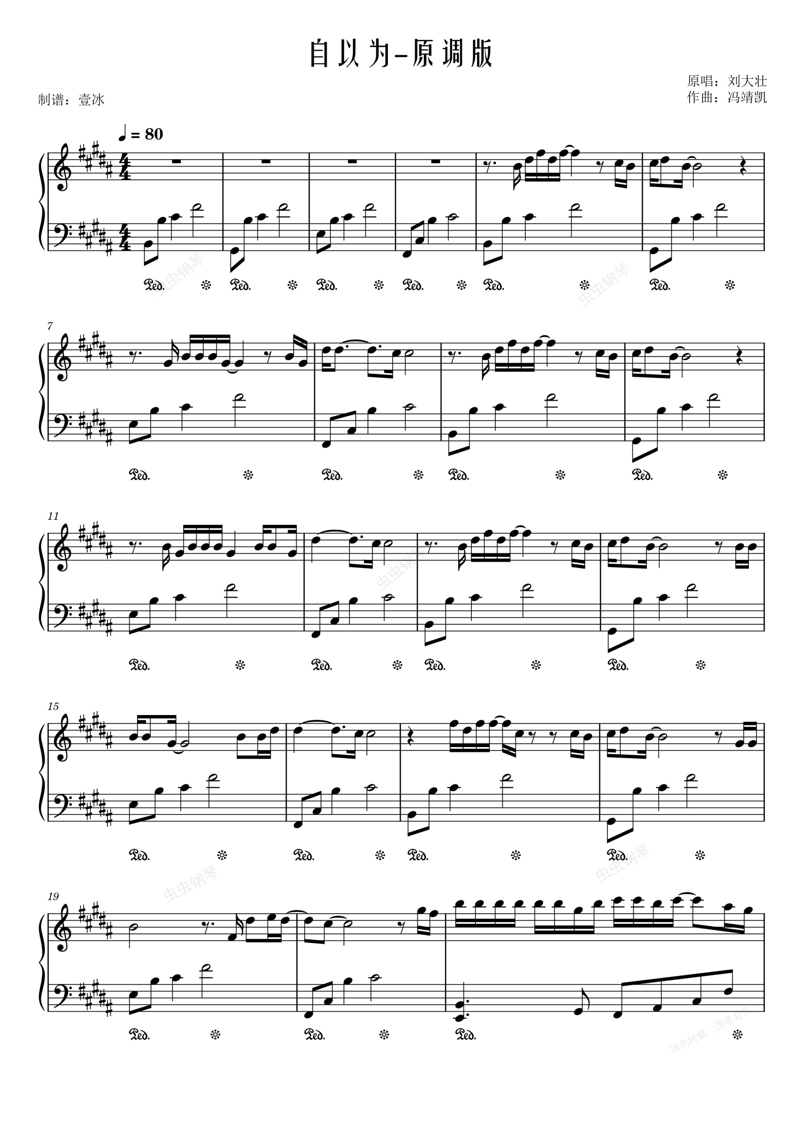 钢琴谱:自以为//刘大壮-原调版简单易上手