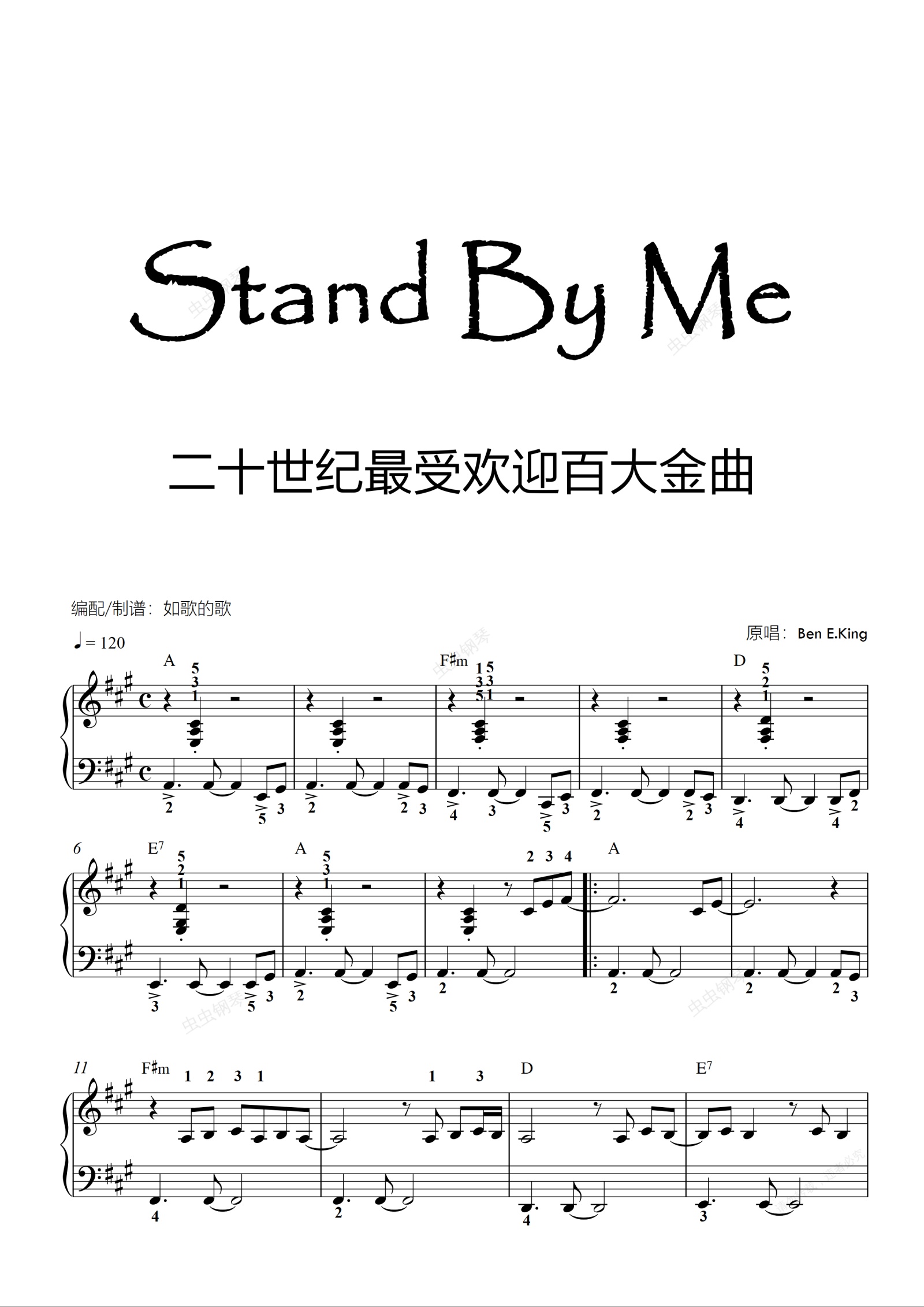 钢琴谱:Stand By Me入门可弹/ 20世纪百大金曲(指法&功能)