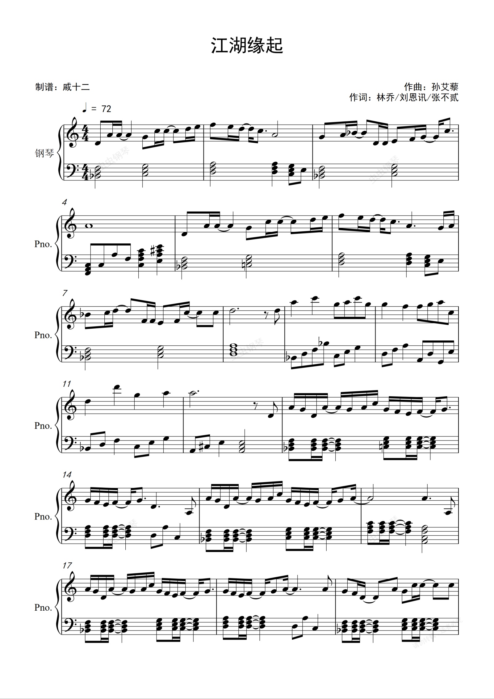 钢琴谱:江湖缘起(网剑3主题曲)-C调简单版