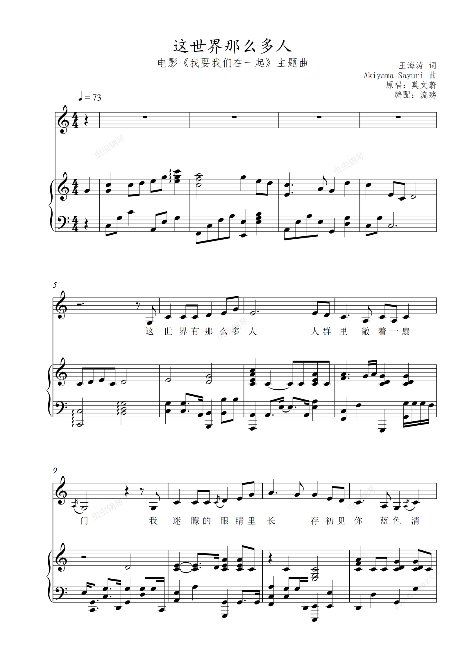 钢琴谱:这世界那么多人(C调弹唱谱)