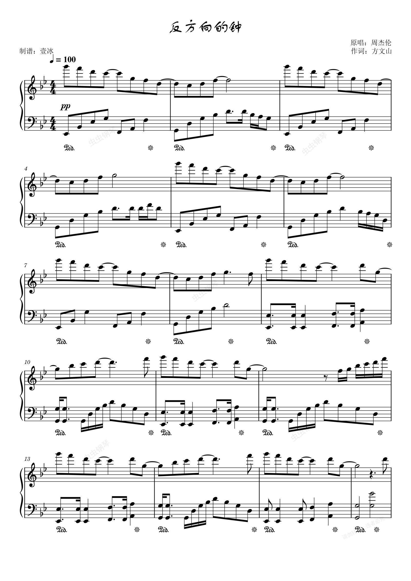 钢琴谱:反方向的钟//周杰伦-简单易上手 原调