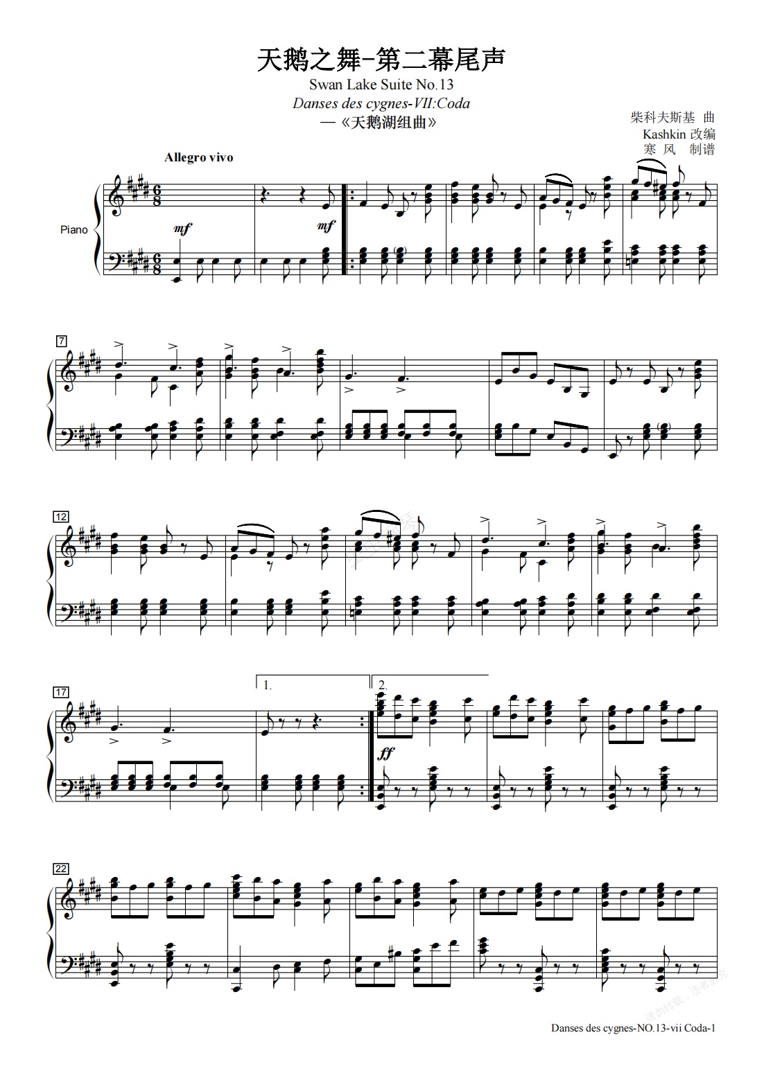 钢琴谱:天鹅湖组曲No.13-Ⅶ-第二幕尾声