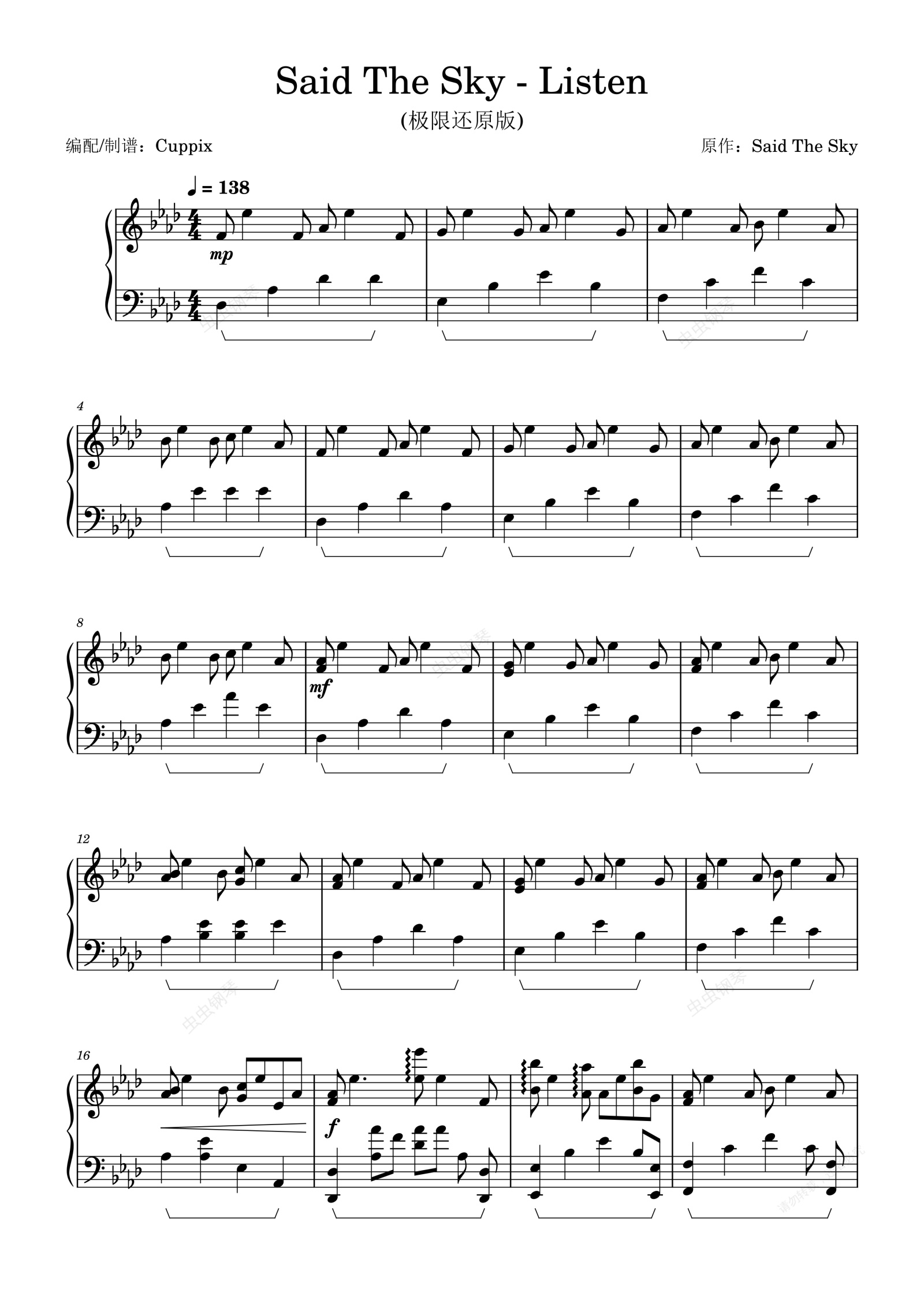 钢琴谱:《Listen》极限还原-Cuppix编配(Said The Sky)