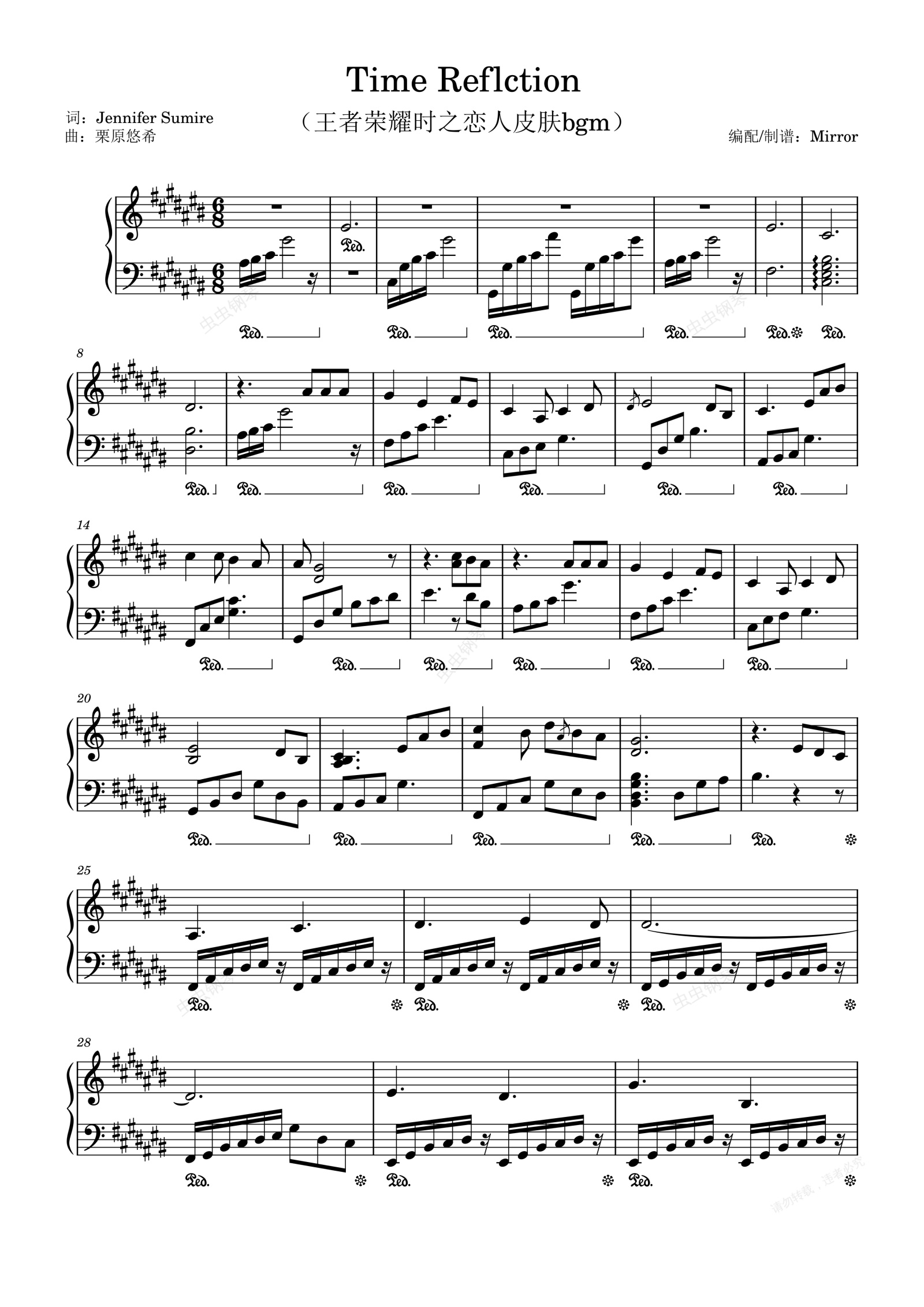 钢琴谱:钢琴原调 Time Reflection(王者荣耀时之恋人bgm)