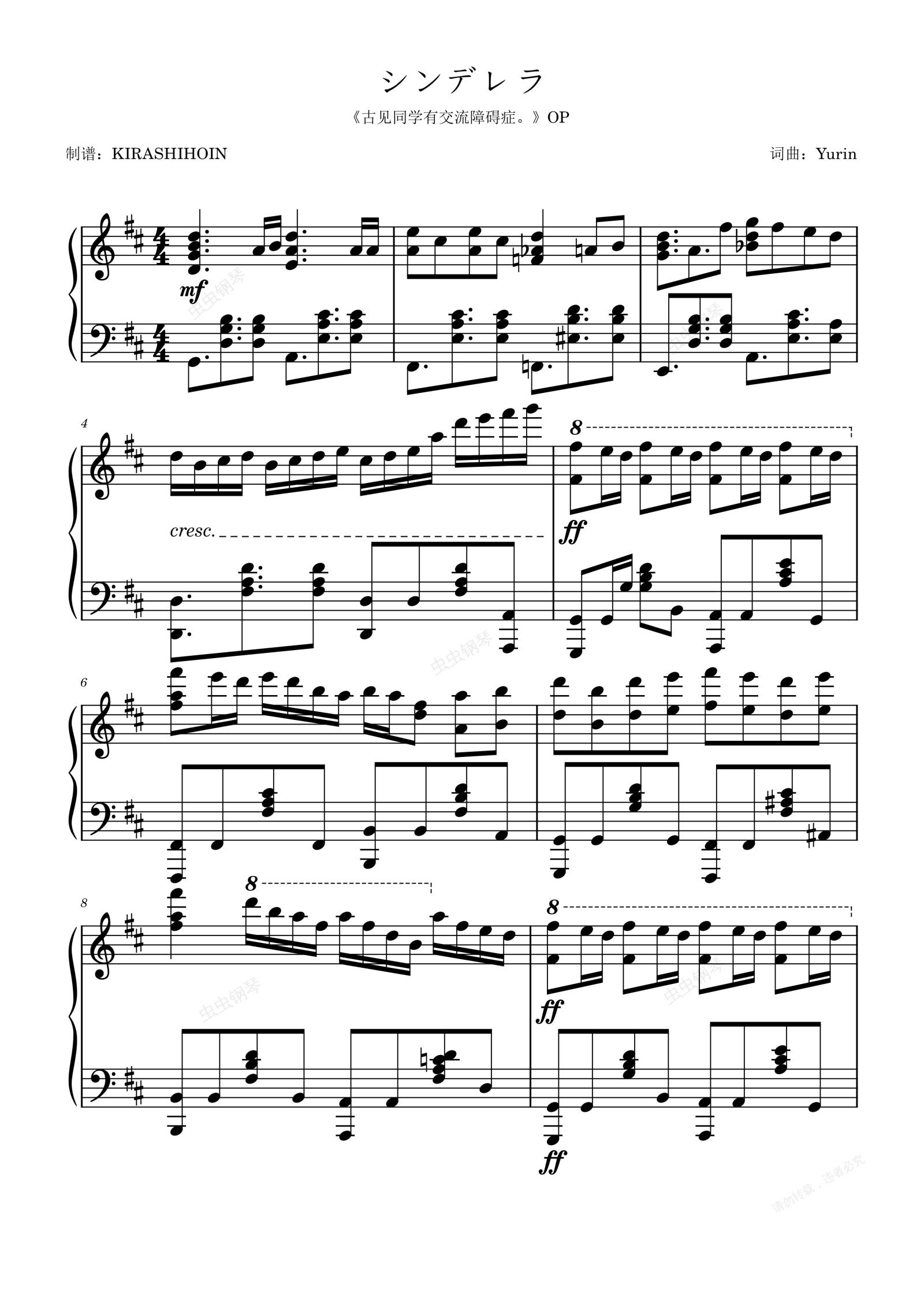 钢琴谱:灰姑娘/シンデレラ(《古见同学有交流障碍症。》OP/片头曲)- Cidergirl