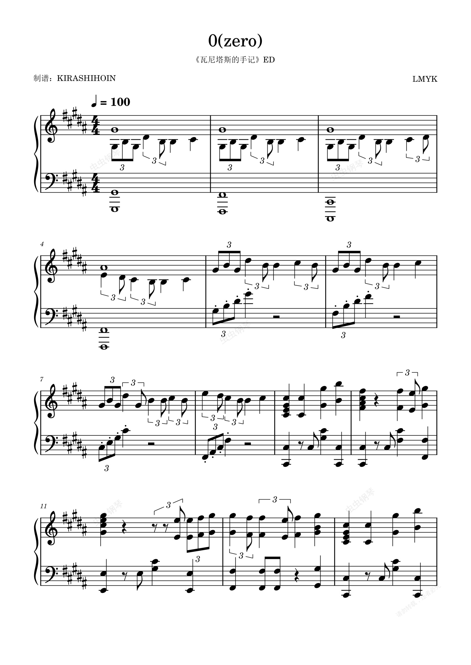 钢琴谱:0(zero)(《瓦尼塔斯的笔记/瓦尼塔斯的手记》ED/片尾曲)- LMYK