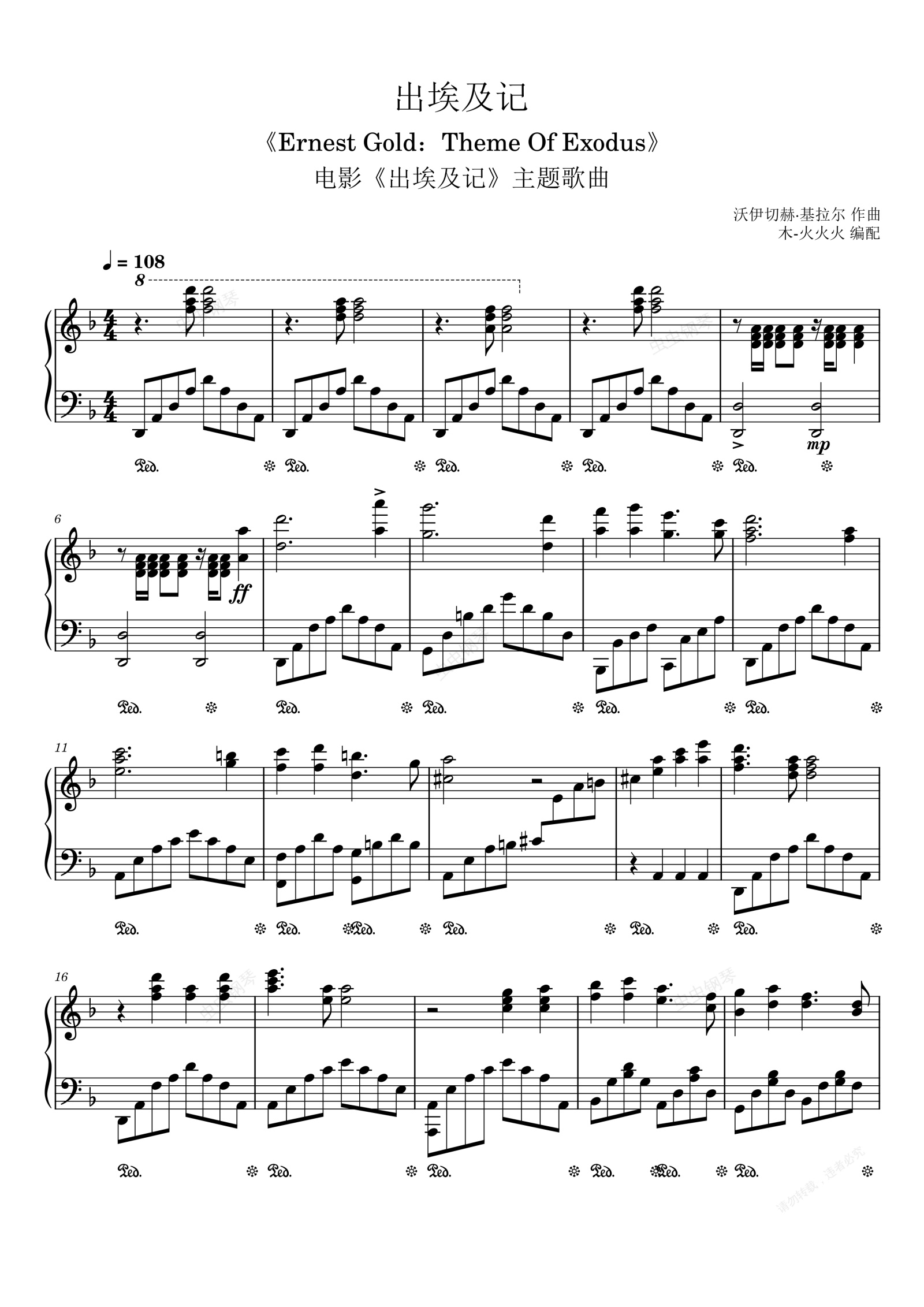 钢琴谱:出埃及记(简化版)《Ernest Gold:Theme Of Exodus》
