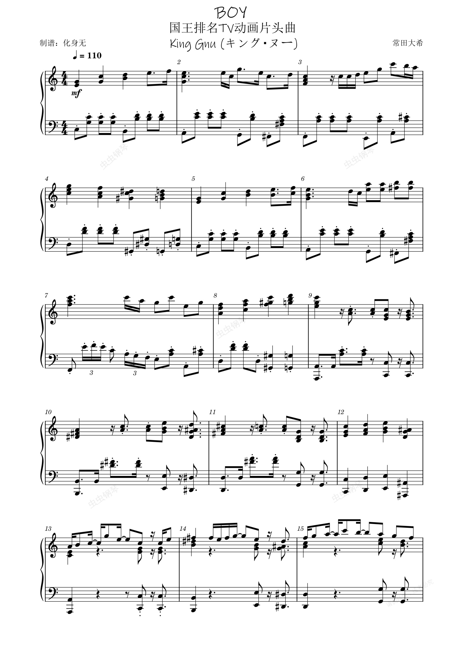 钢琴谱:国王排名TV动画片头曲 BOY King Gnu (キング・ヌー)