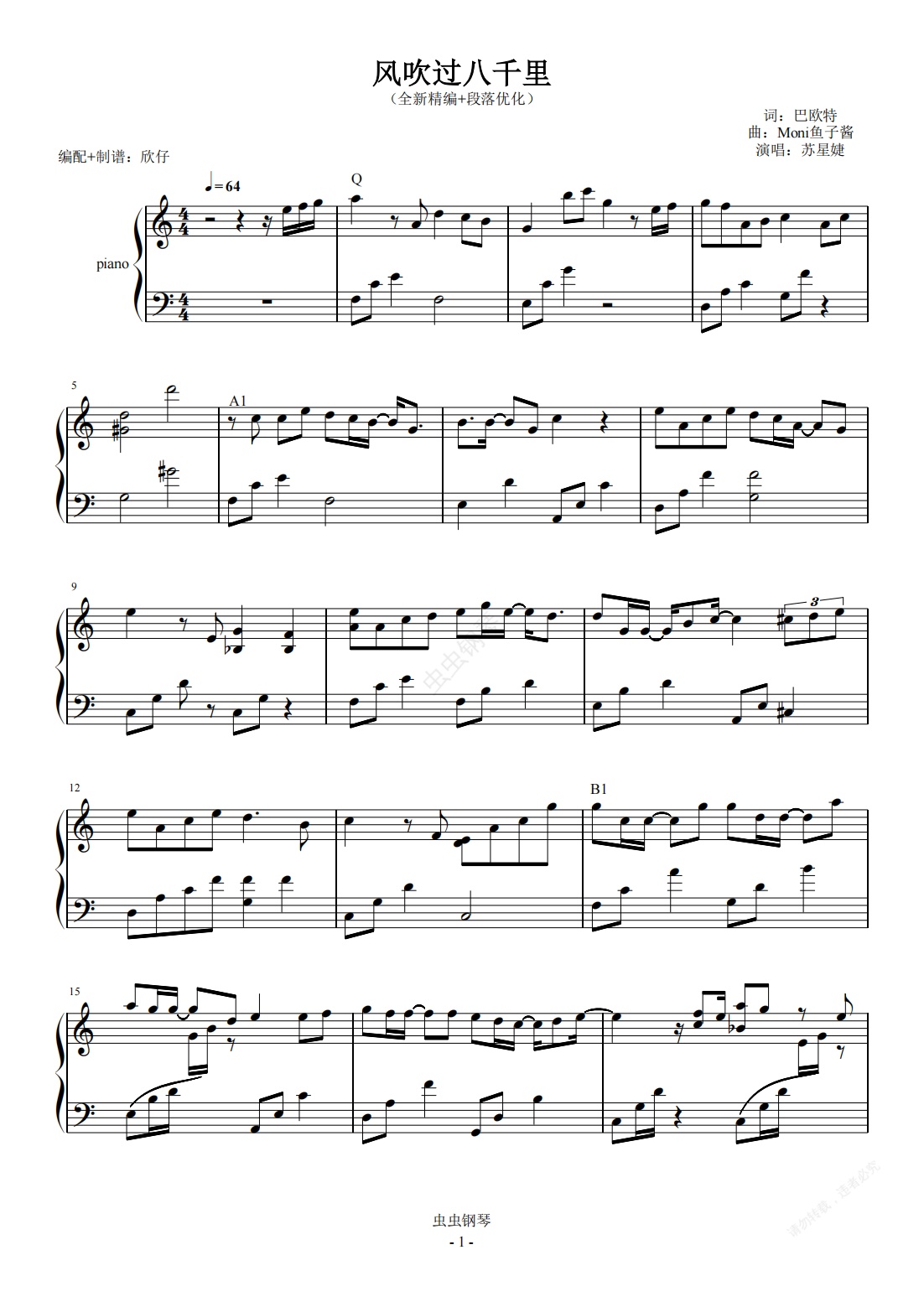 钢琴谱:苏星婕-C《风吹过八千里》(全新精编+段落优化)