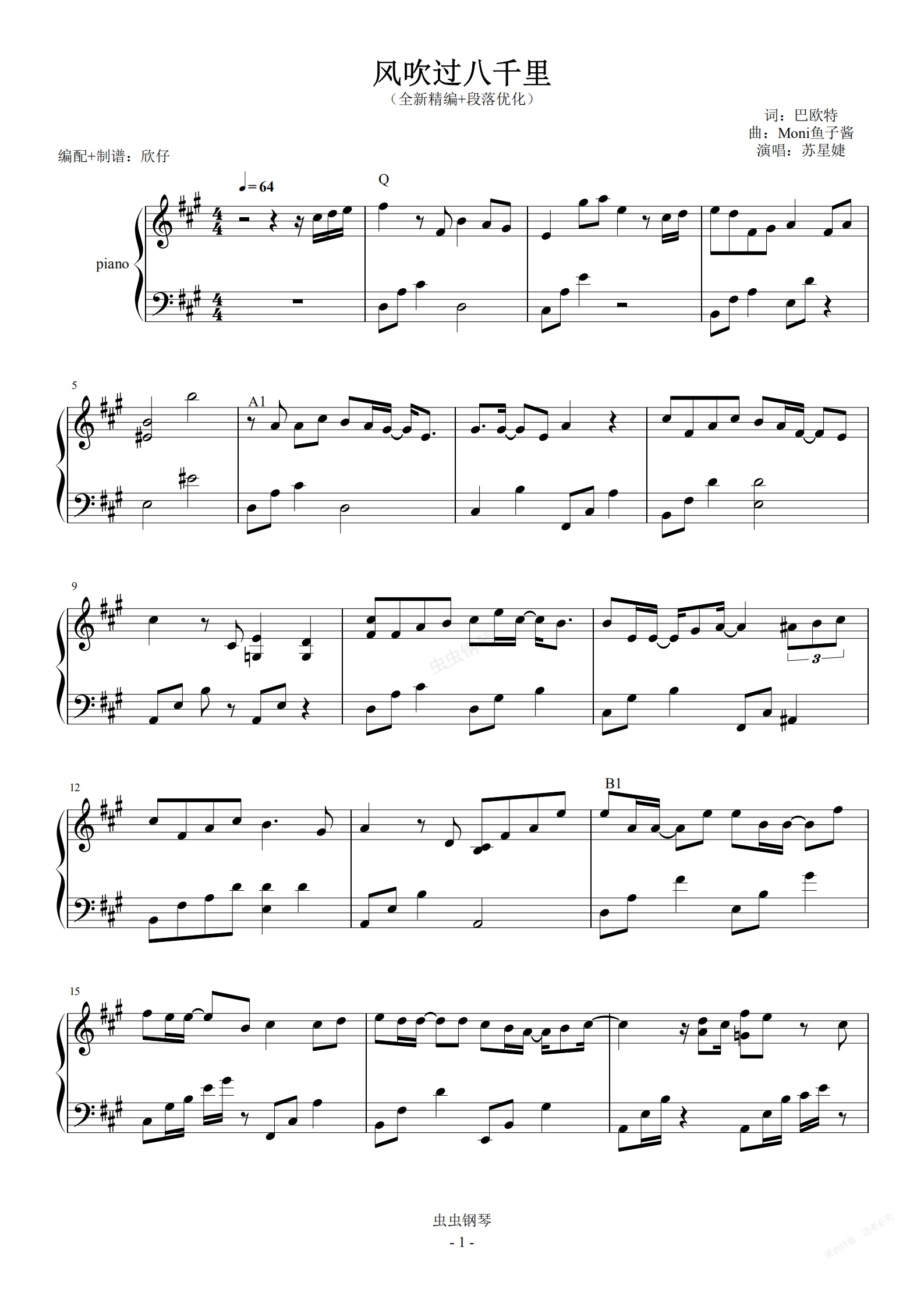 钢琴谱:苏星婕-A《风吹过八千里》(全新精编+段落优化)