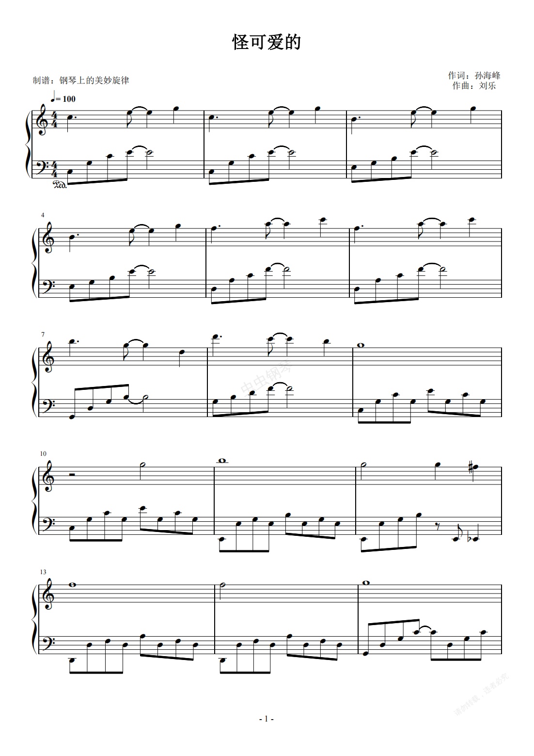 钢琴谱:怪可爱的 C调流行 孙海峰
