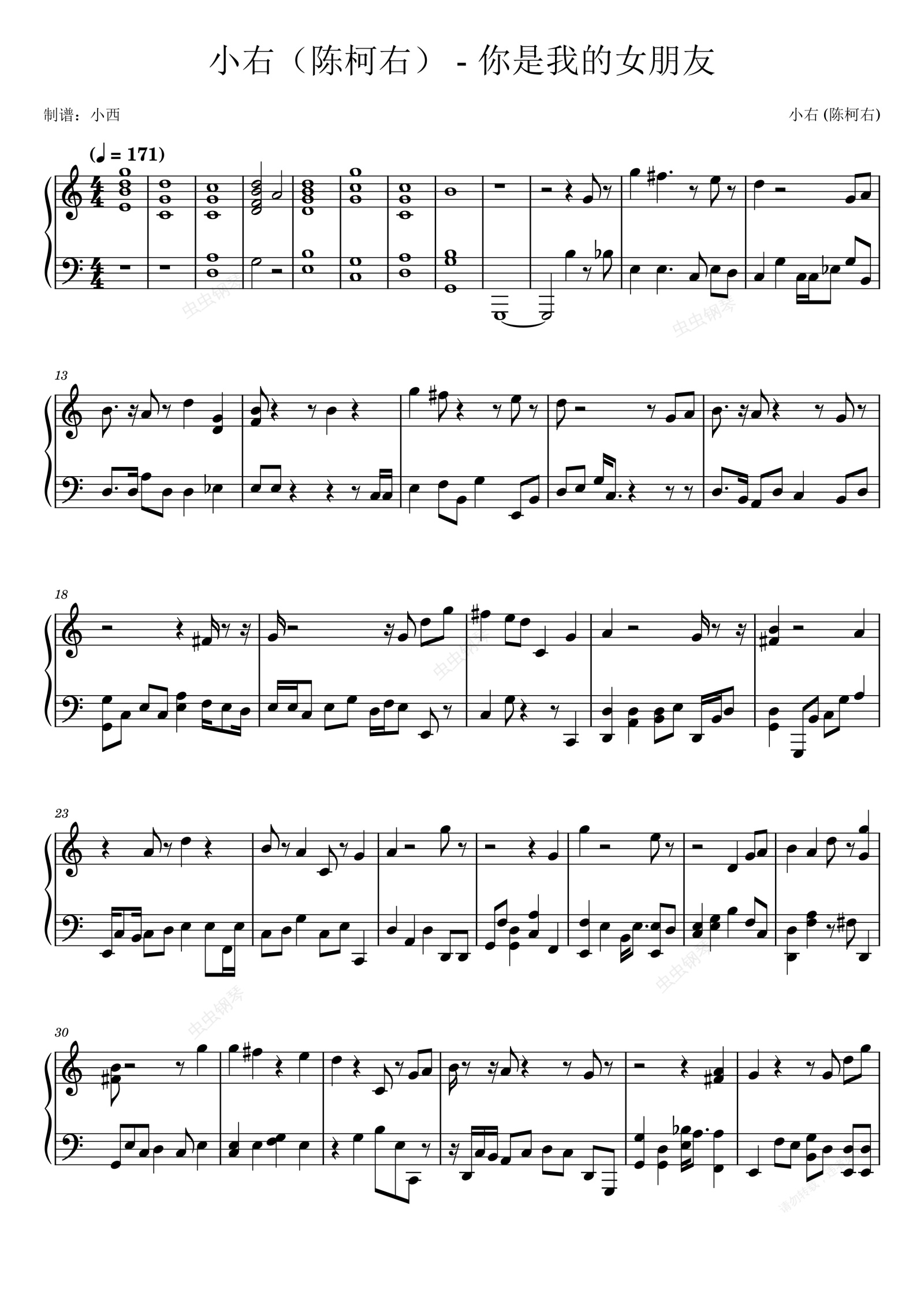 钢琴谱:小右(陈柯右) - 你是我的女朋友