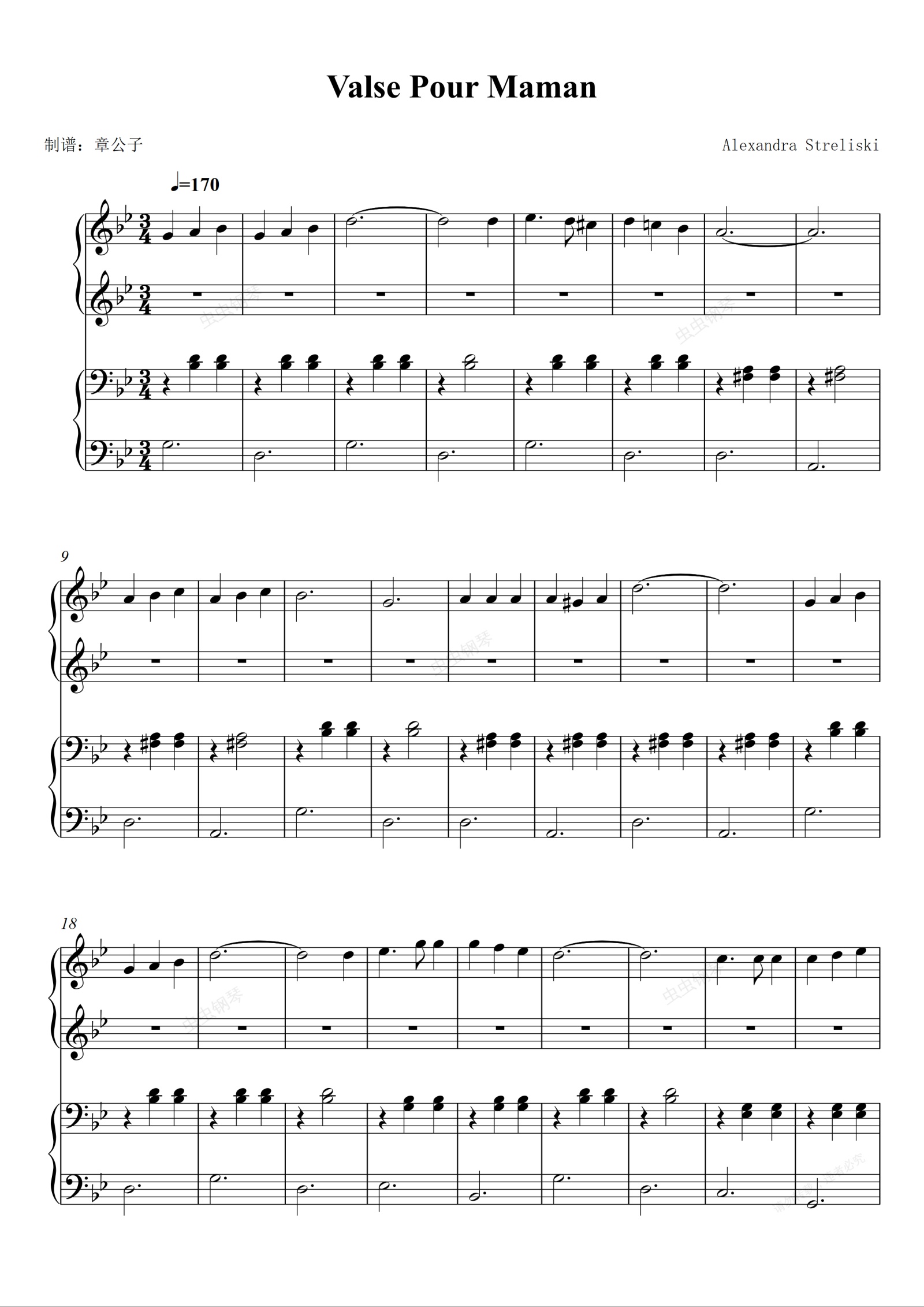 钢琴谱:《Valse Pour Maman》- Alexandra Stréliski 四手联弹版