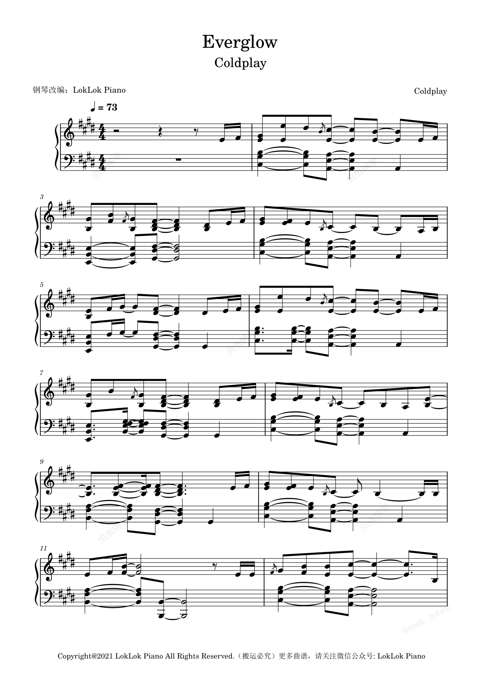 钢琴谱:Everglow - Coldplay | LokLok Piano演奏版