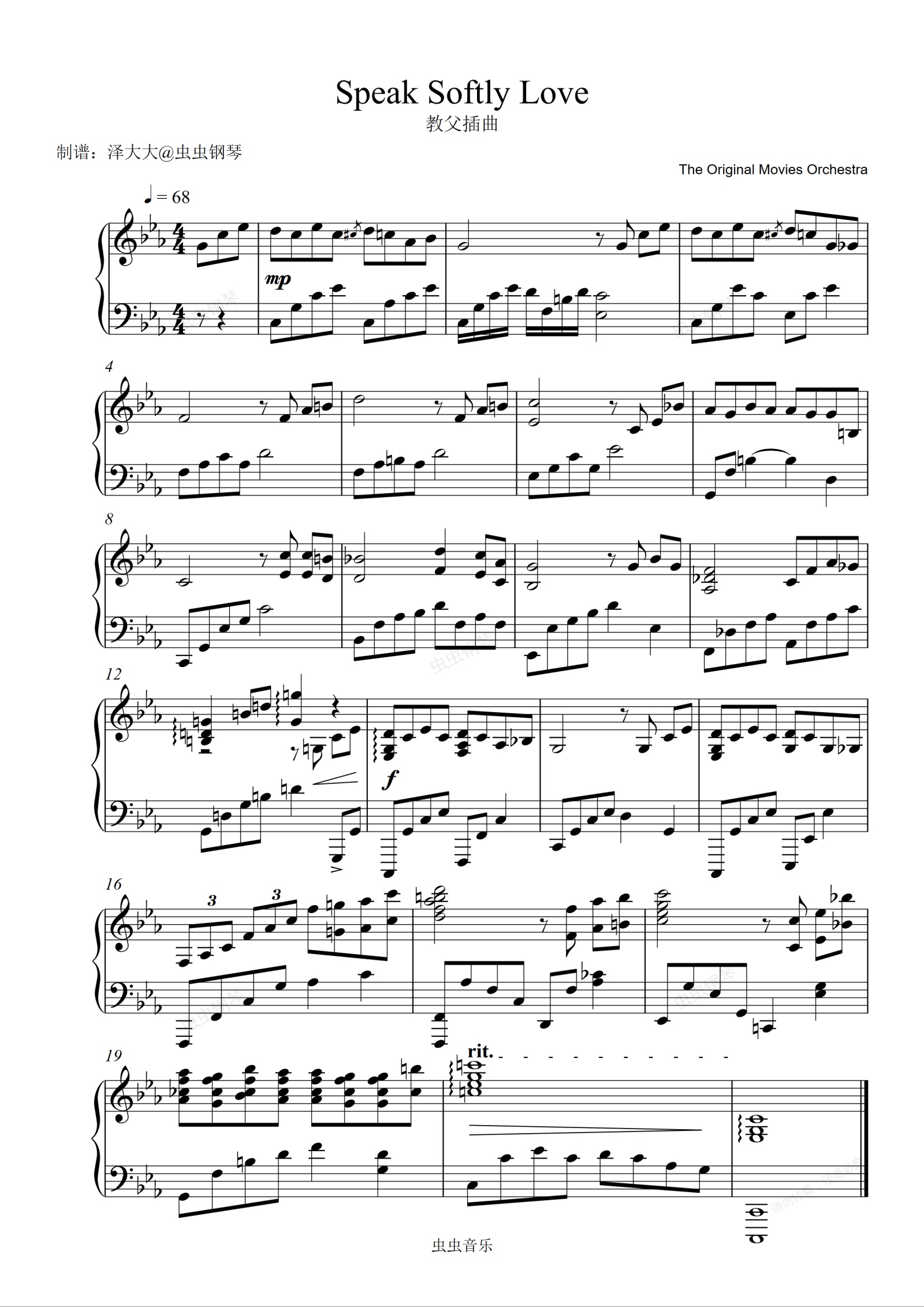 钢琴谱:Speak Softly Love (教父插曲)【钢琴独奏版】泽大大