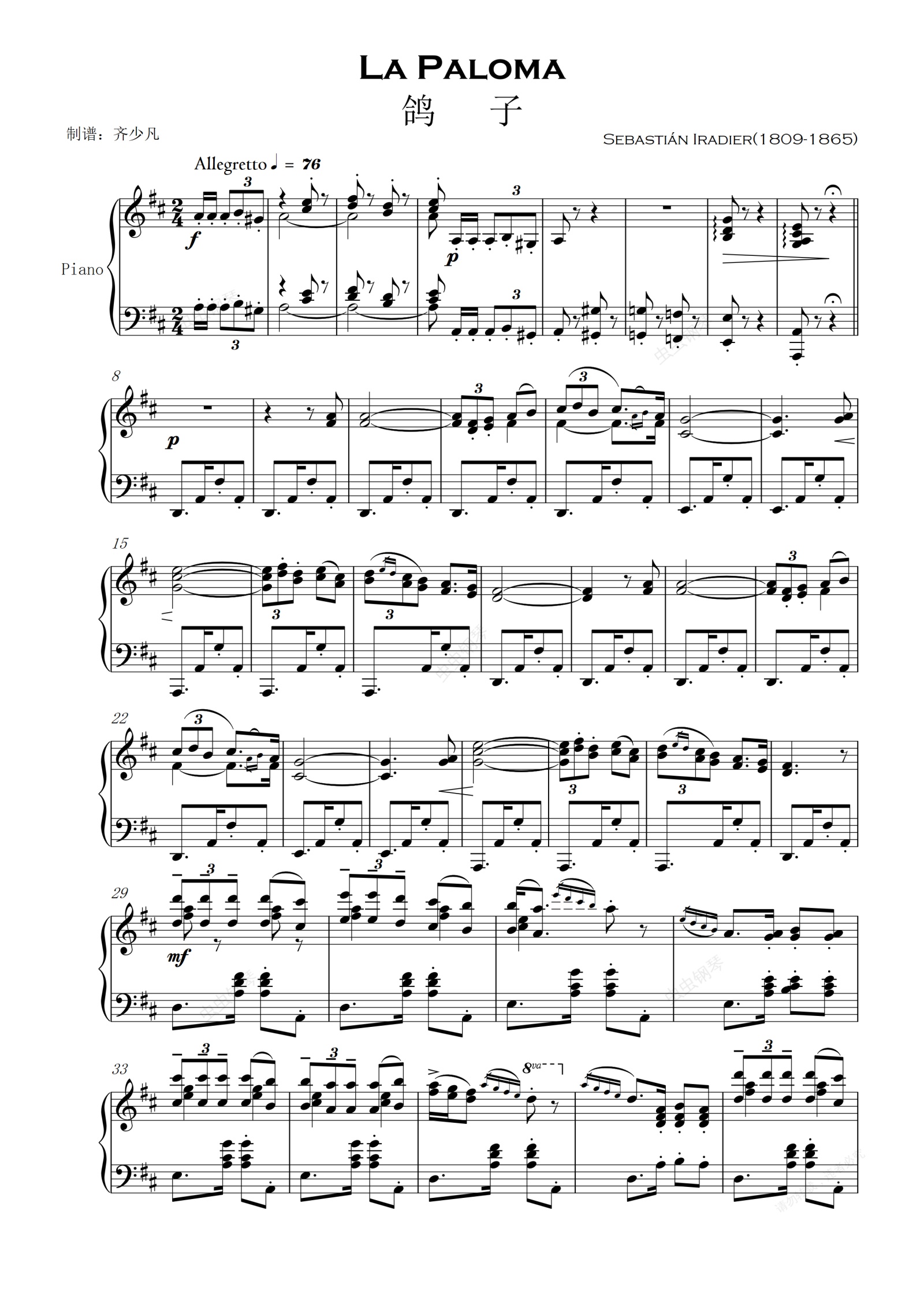 钢琴谱:【西班牙】La Paloma 鸽子