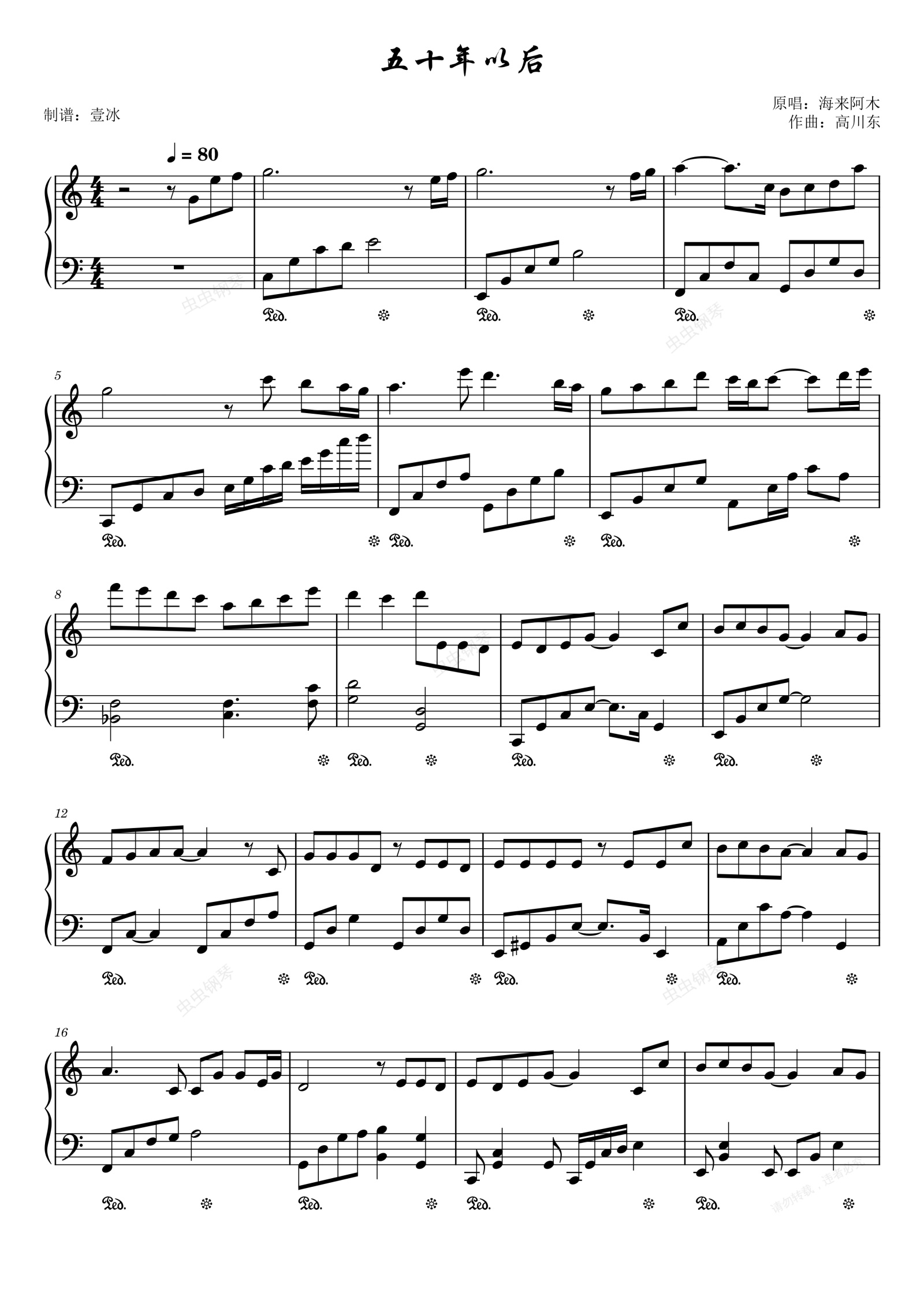钢琴谱:五十年以后//海来阿木-简单 易上手 原调