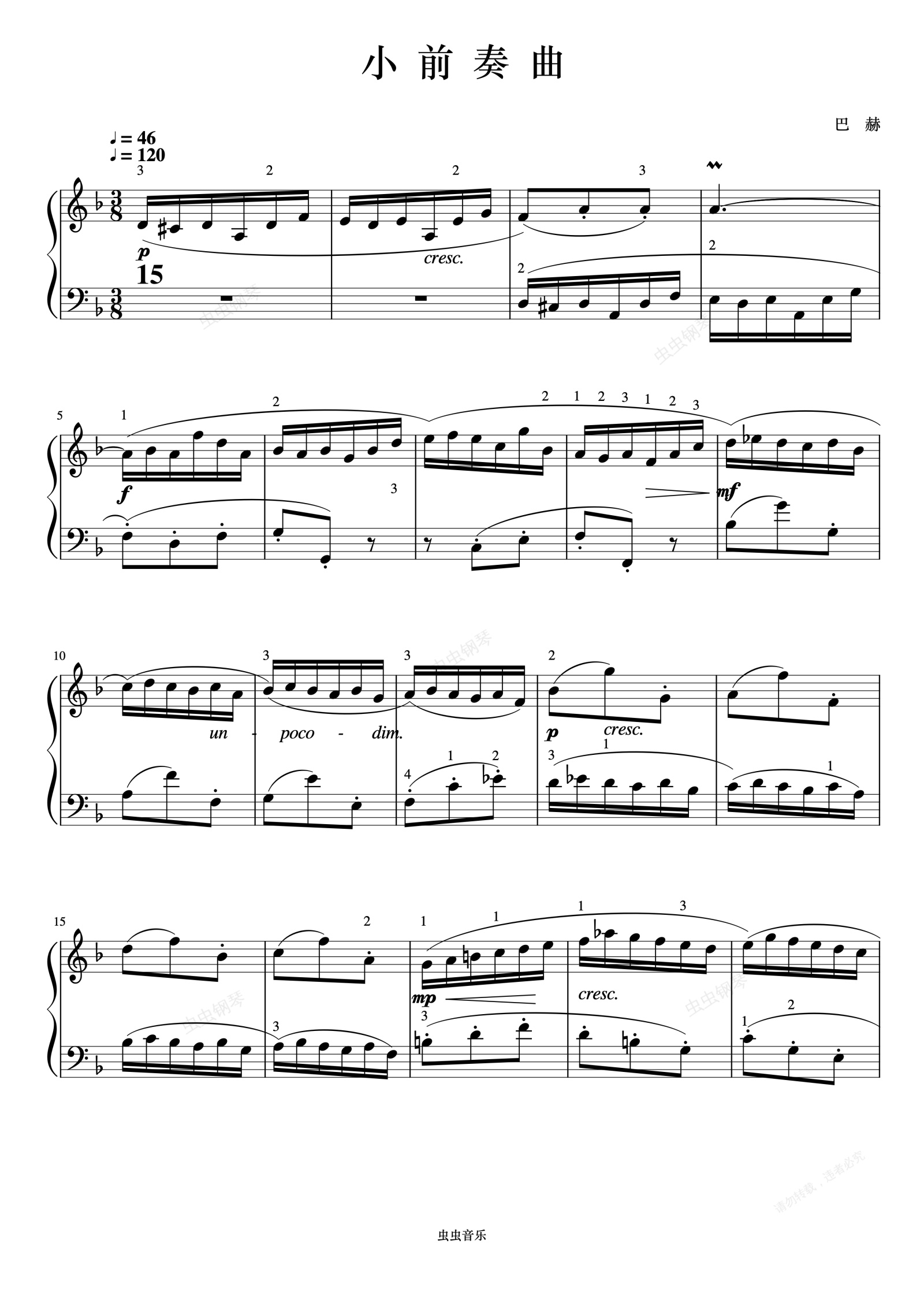 钢琴谱:小前奏曲NO.15《巴赫 小前奏曲与赋格曲》