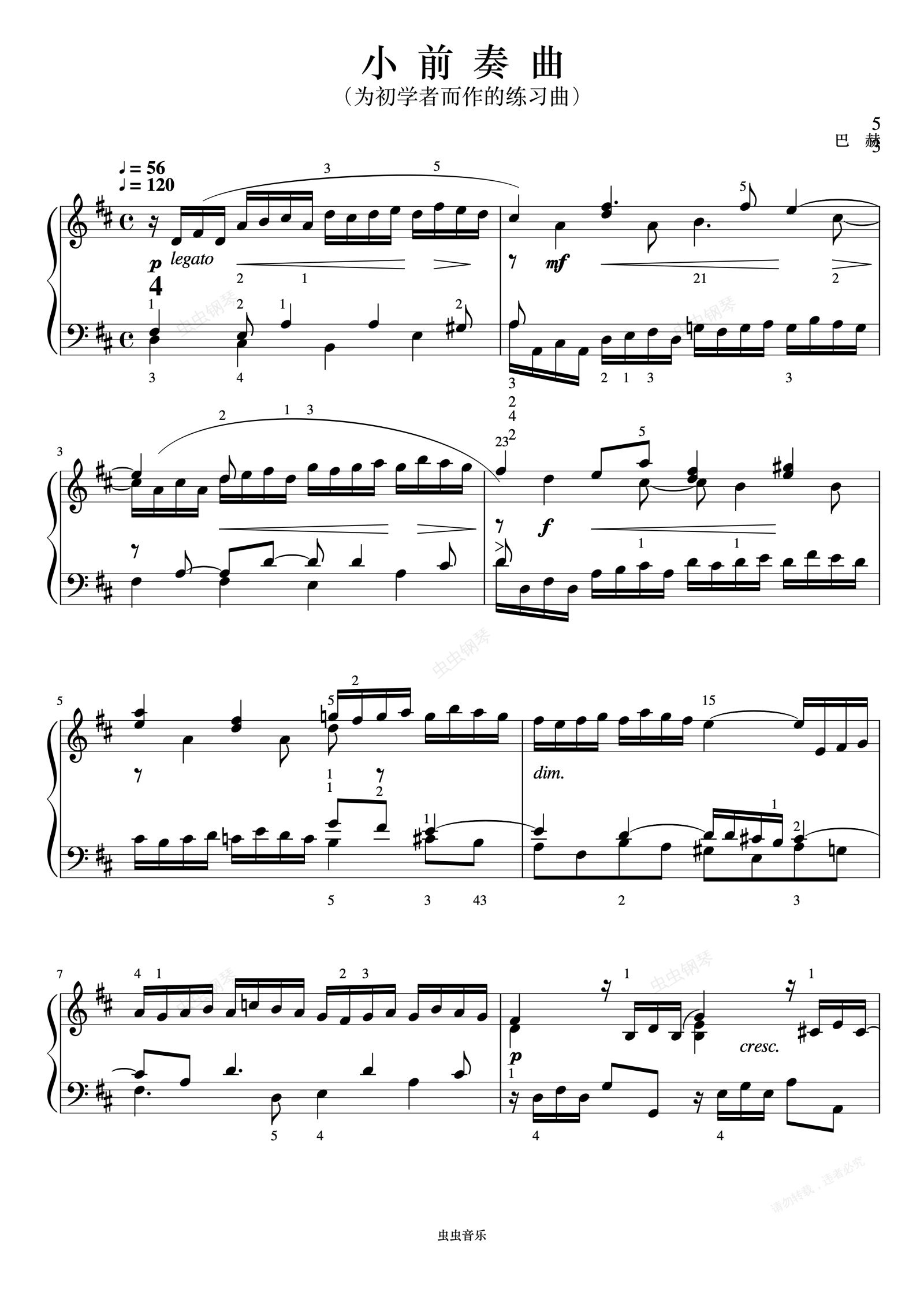 钢琴谱:小前奏曲NO.4《巴赫 小前奏曲与赋格曲》