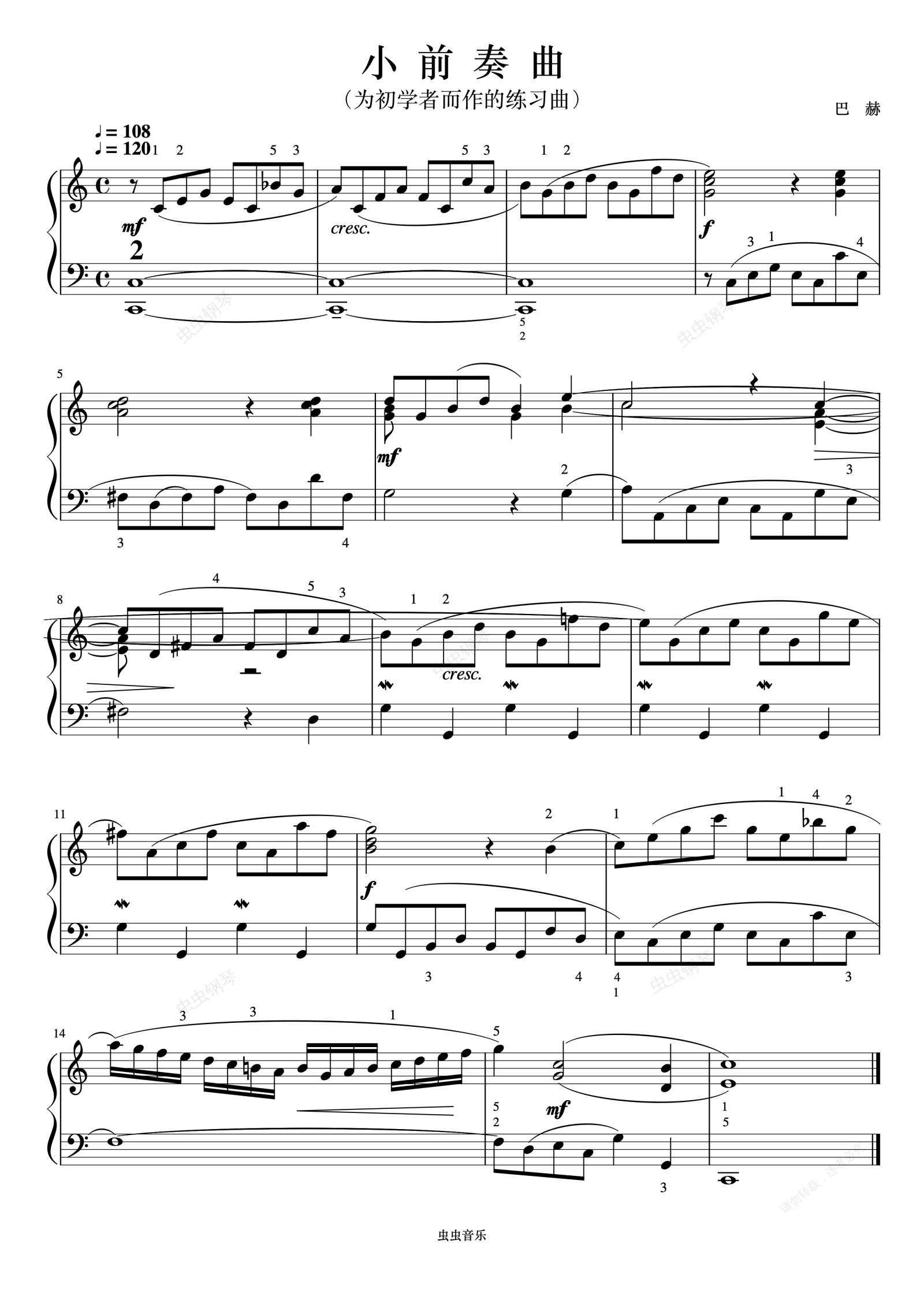 钢琴谱:小前奏曲NO.2《巴赫 小前奏曲与赋格曲》