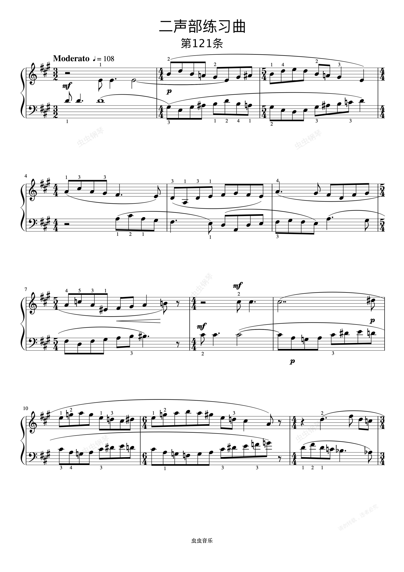 钢琴谱:二声部练习曲《巴托克小宇宙钢琴教程4》