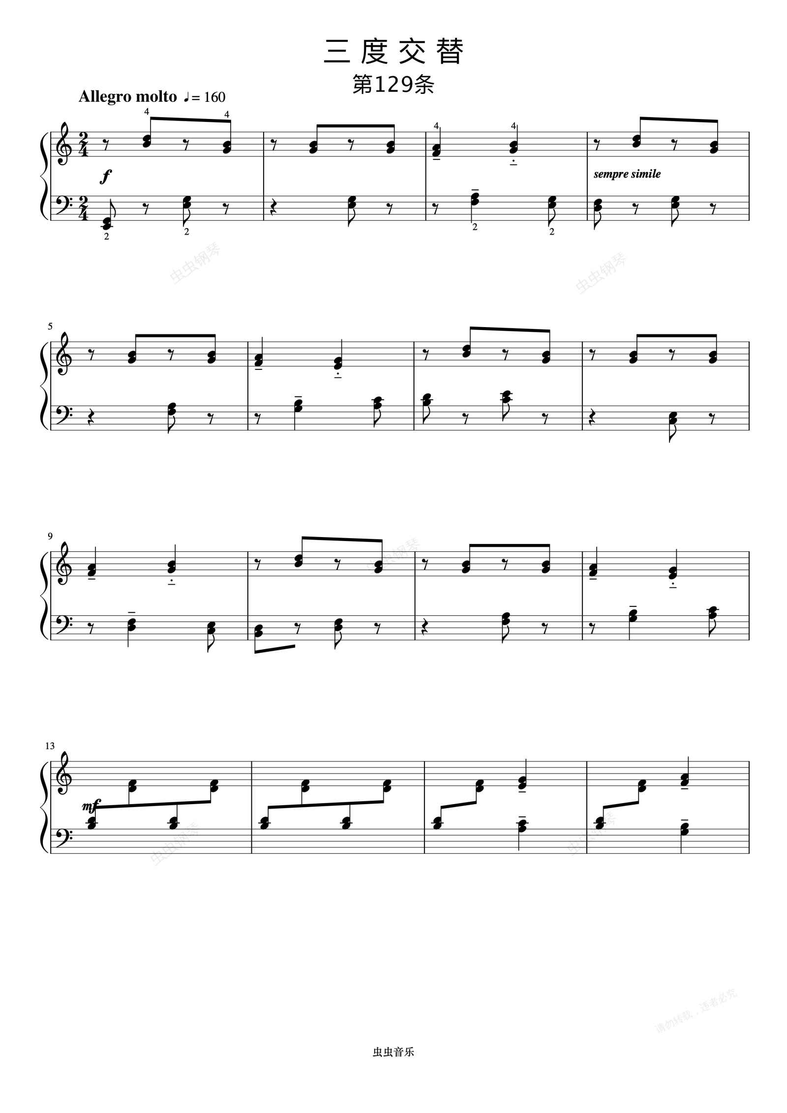 钢琴谱:三度交替《巴托克小宇宙钢琴教程5》