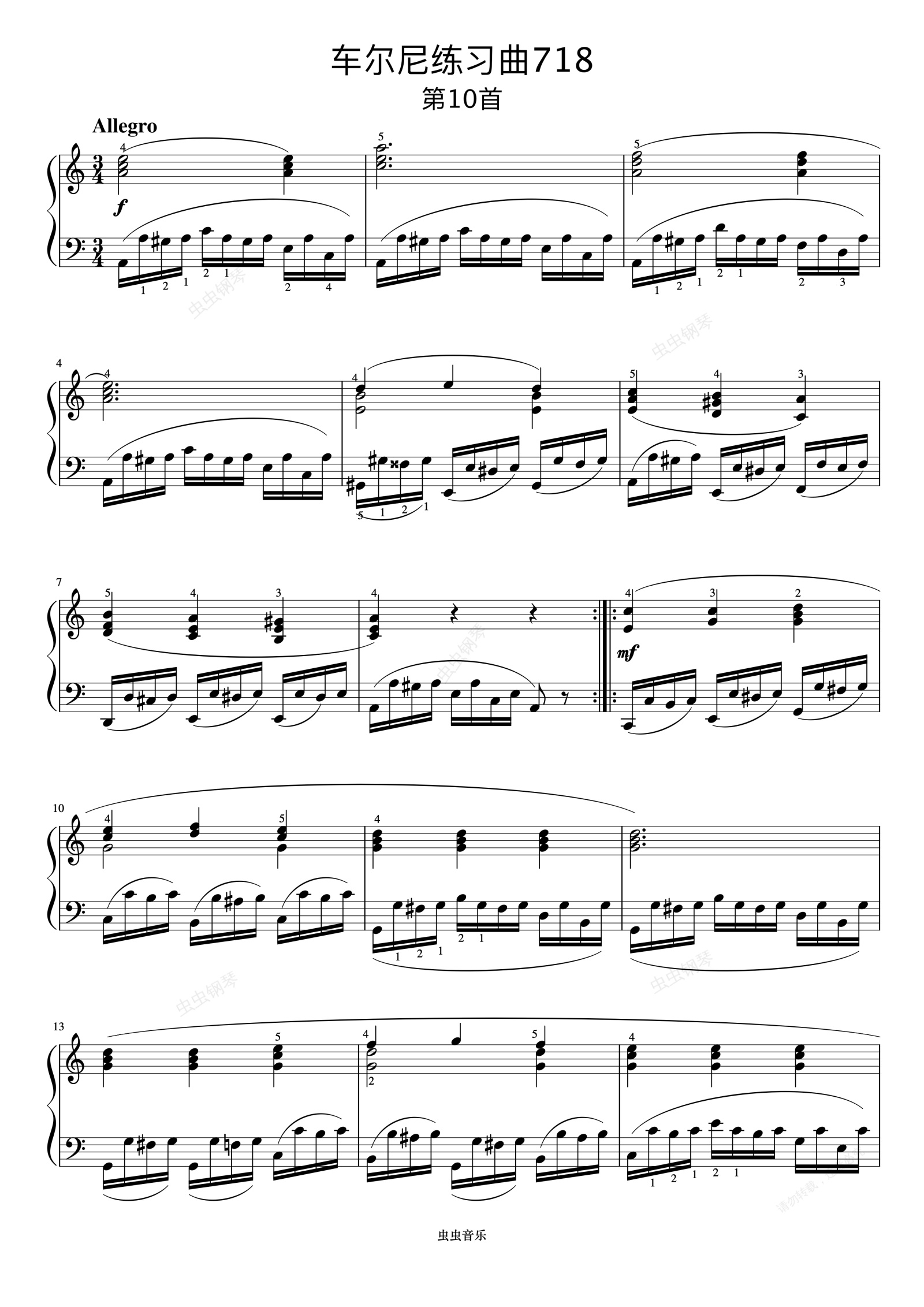 钢琴谱:第10首《车尔尼左手练习曲 作品718》