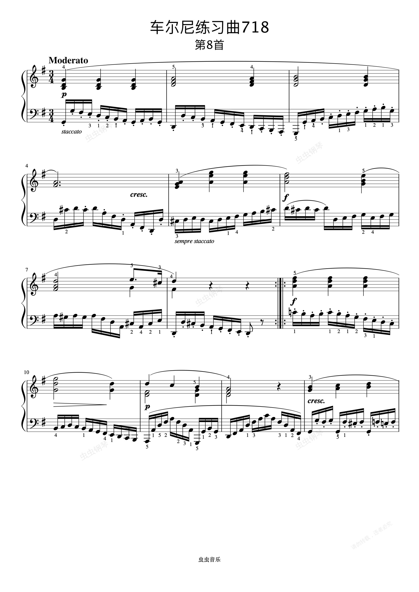钢琴谱:第8首《车尔尼左手练习曲 作品718》
