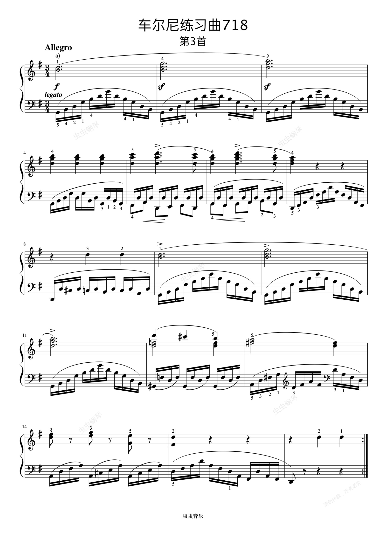 钢琴谱:第3首《车尔尼左手练习曲 作品718》