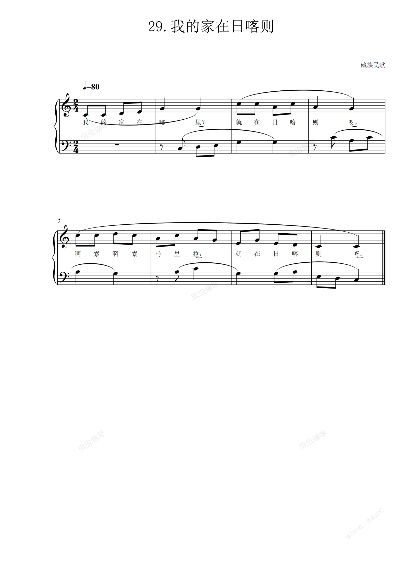 钢琴谱:29.我的家在日喀则