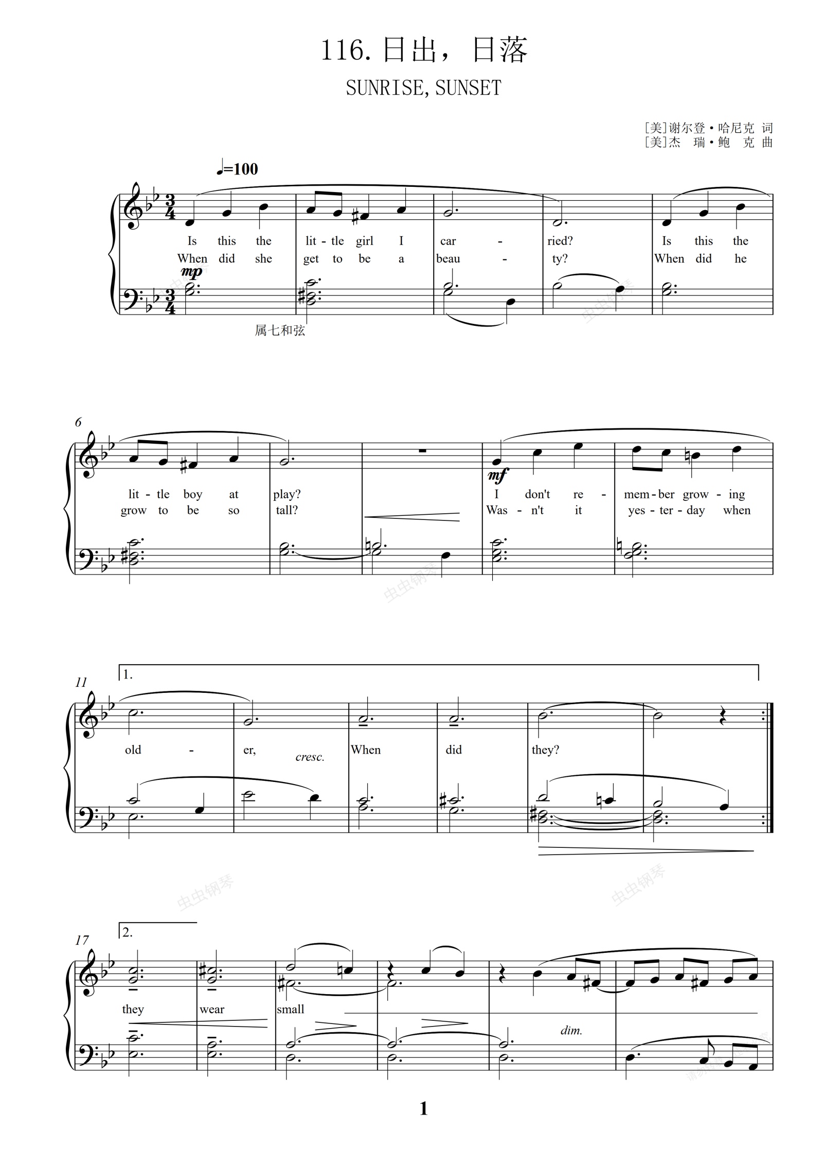 钢琴谱:116.日出,日落
