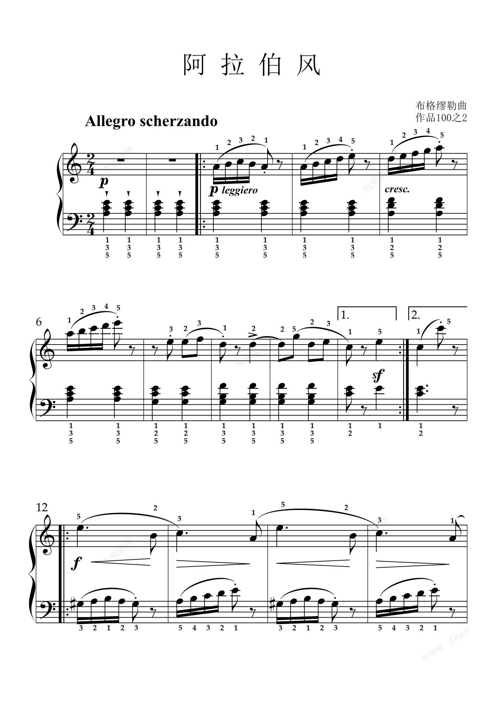 钢琴谱:72. 阿拉伯风(作品100之2)