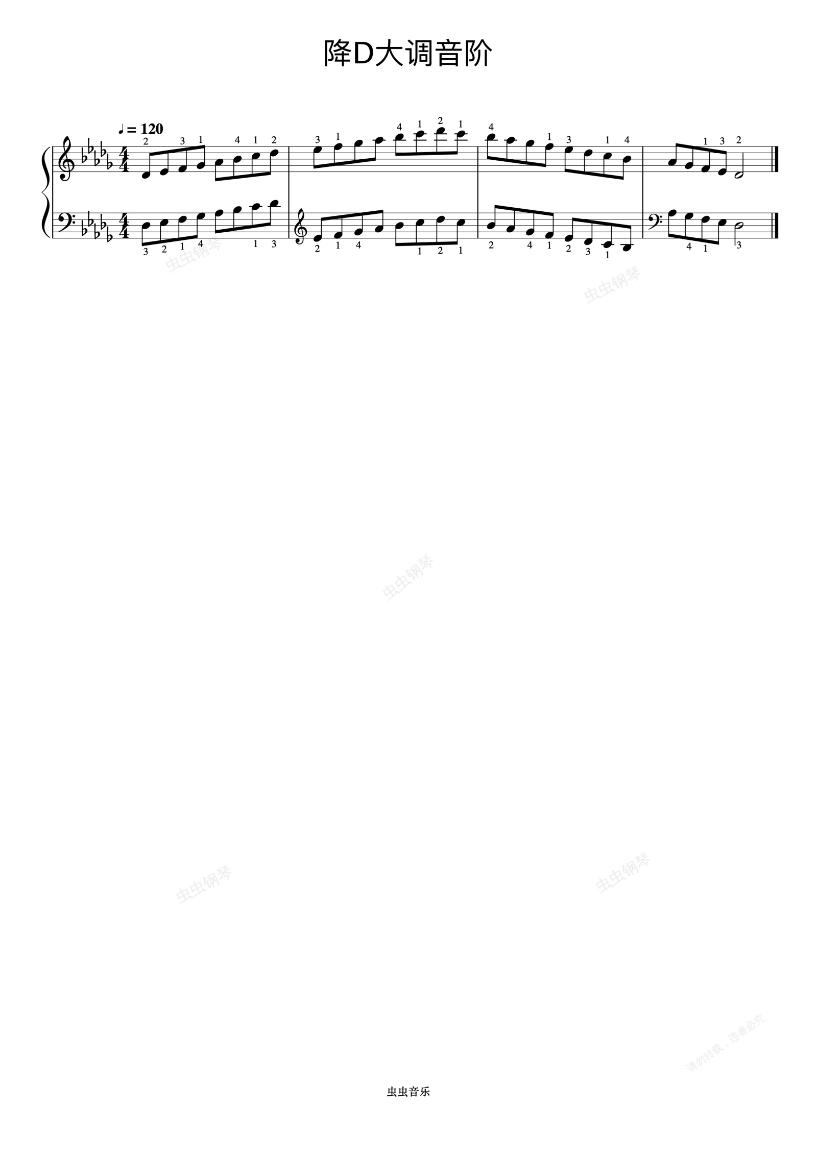 钢琴谱:哈农 No.33-31 降D大调音阶