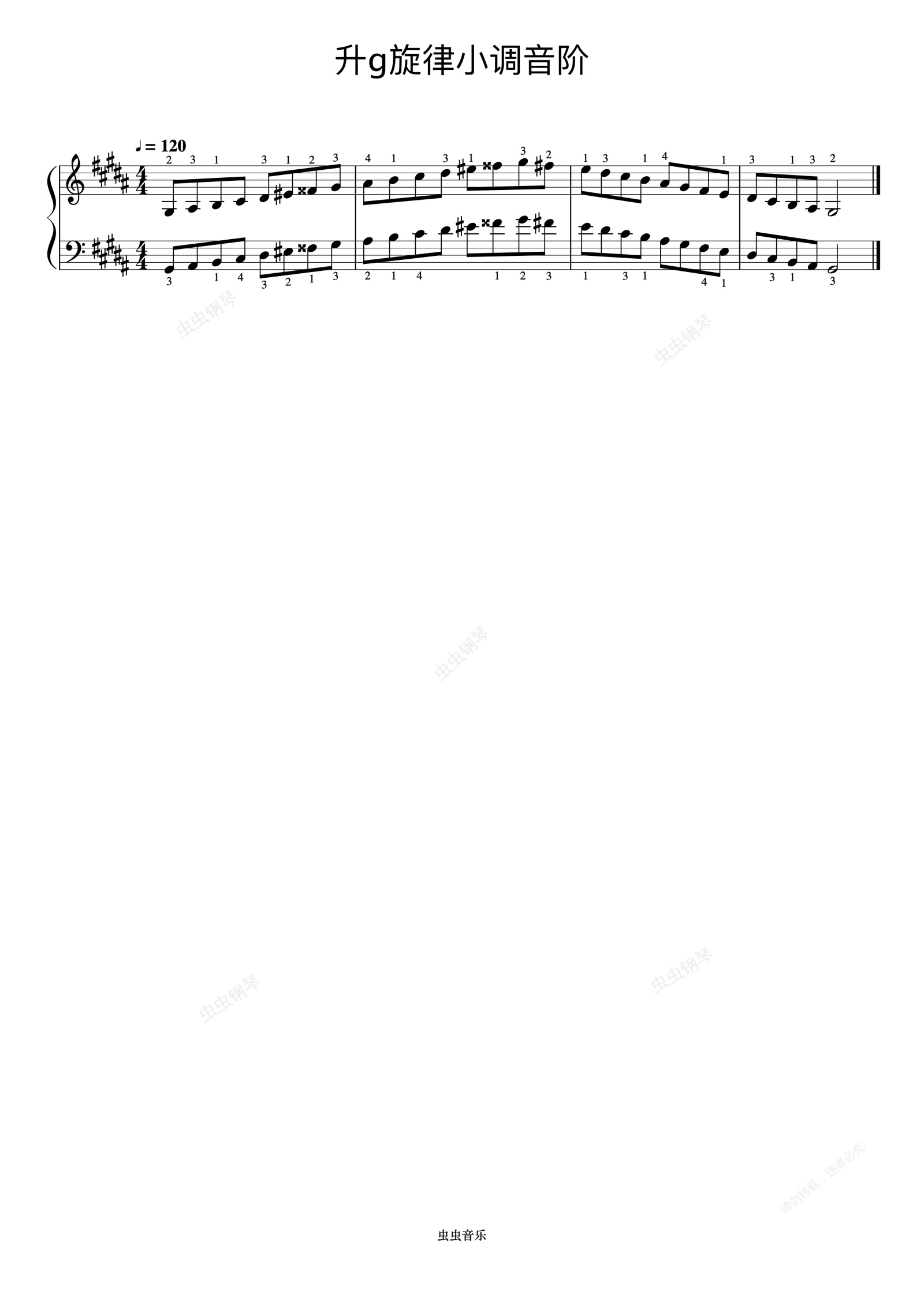 钢琴谱:哈农 No.33-30 升g旋律小调音阶