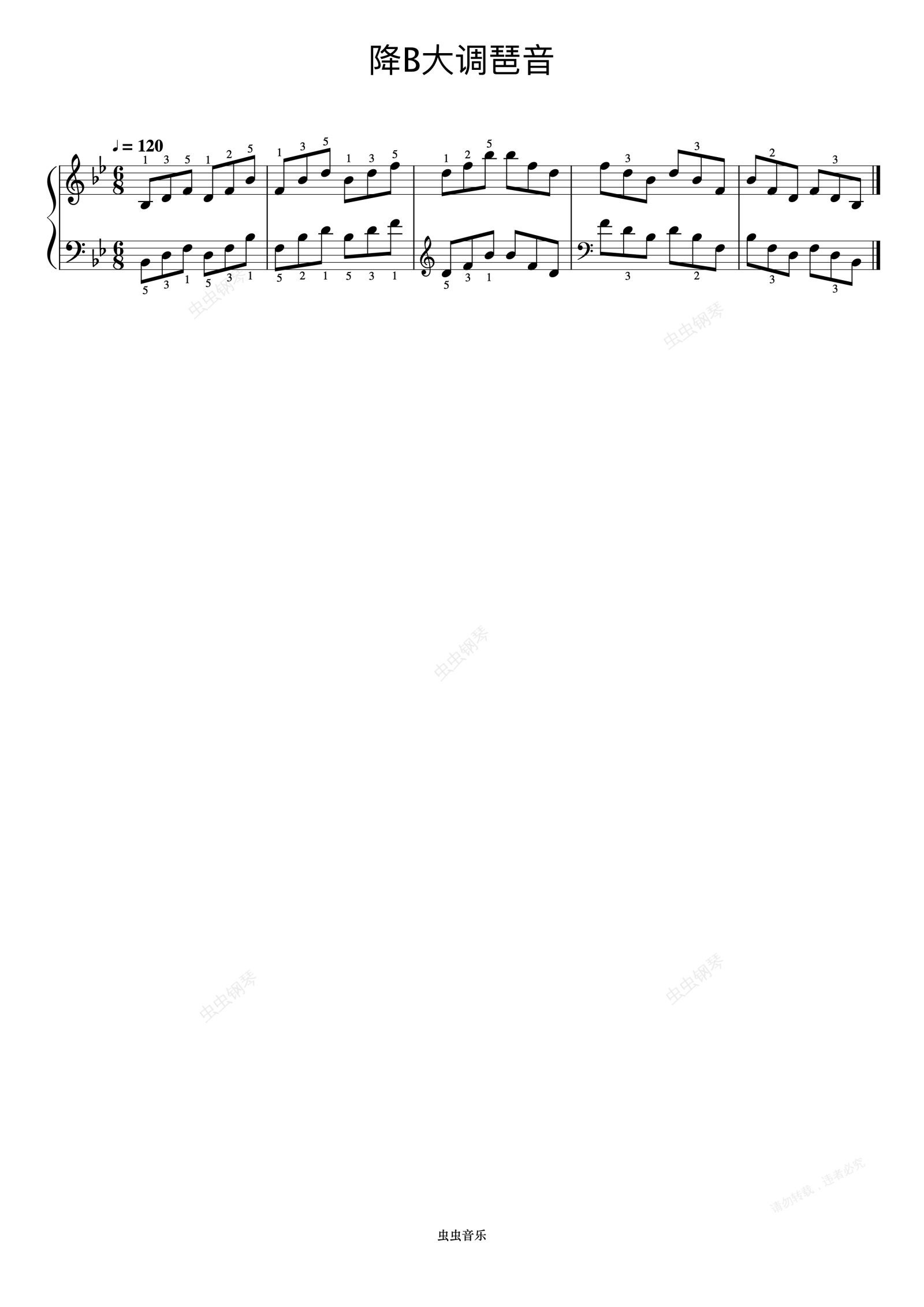 钢琴谱:哈农 NO.32-18 降B大调琶音