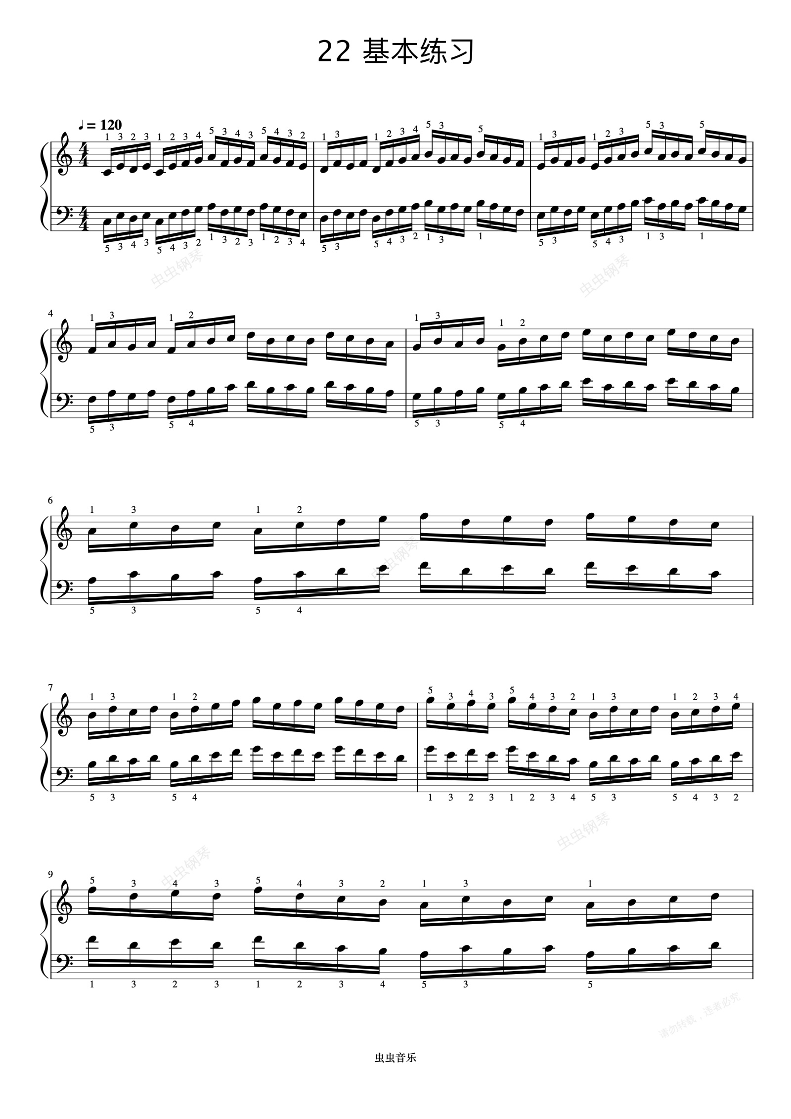 钢琴谱:哈农 NO.22 基本练习