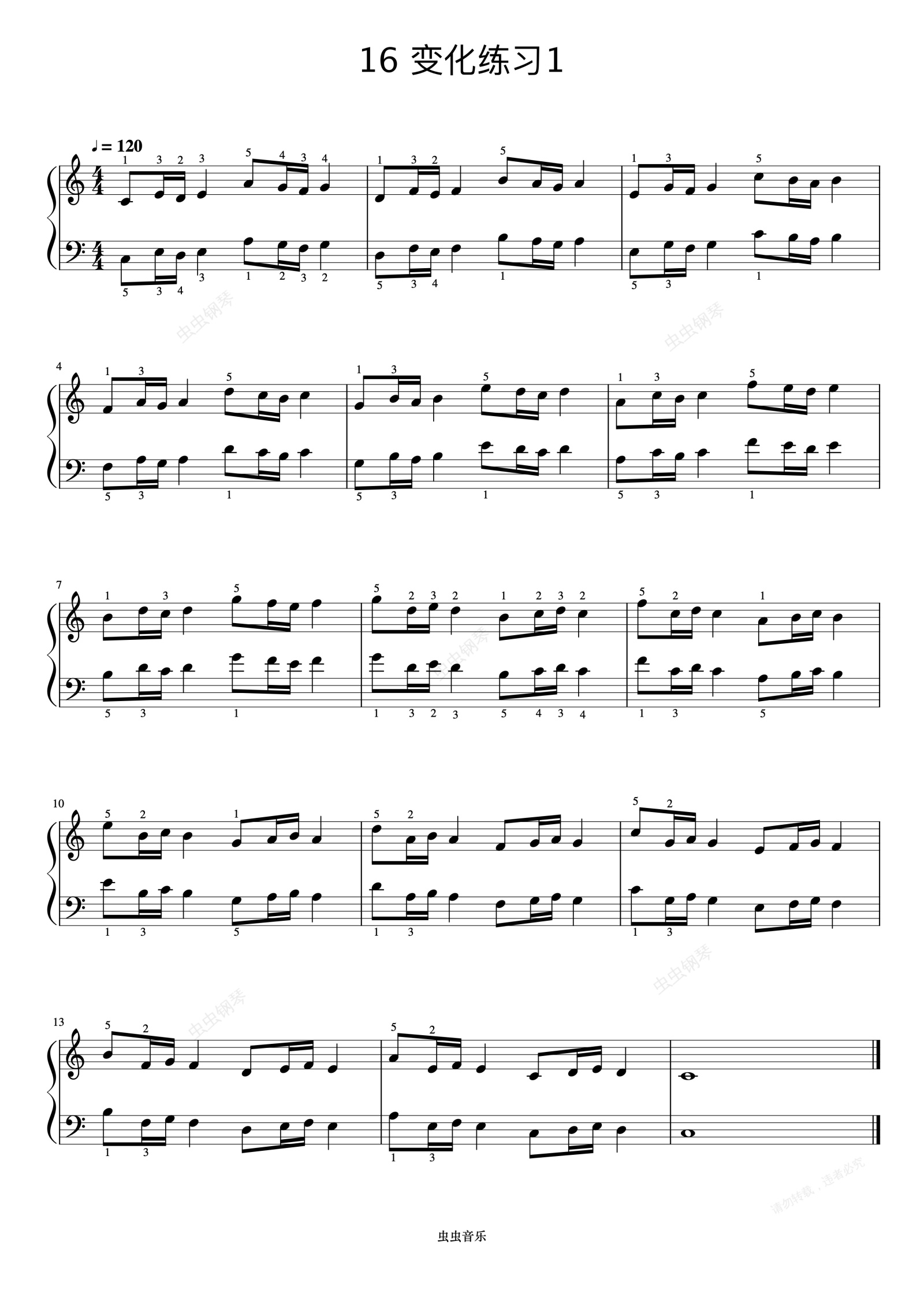 钢琴谱:哈农 NO.16-2 变化练习1