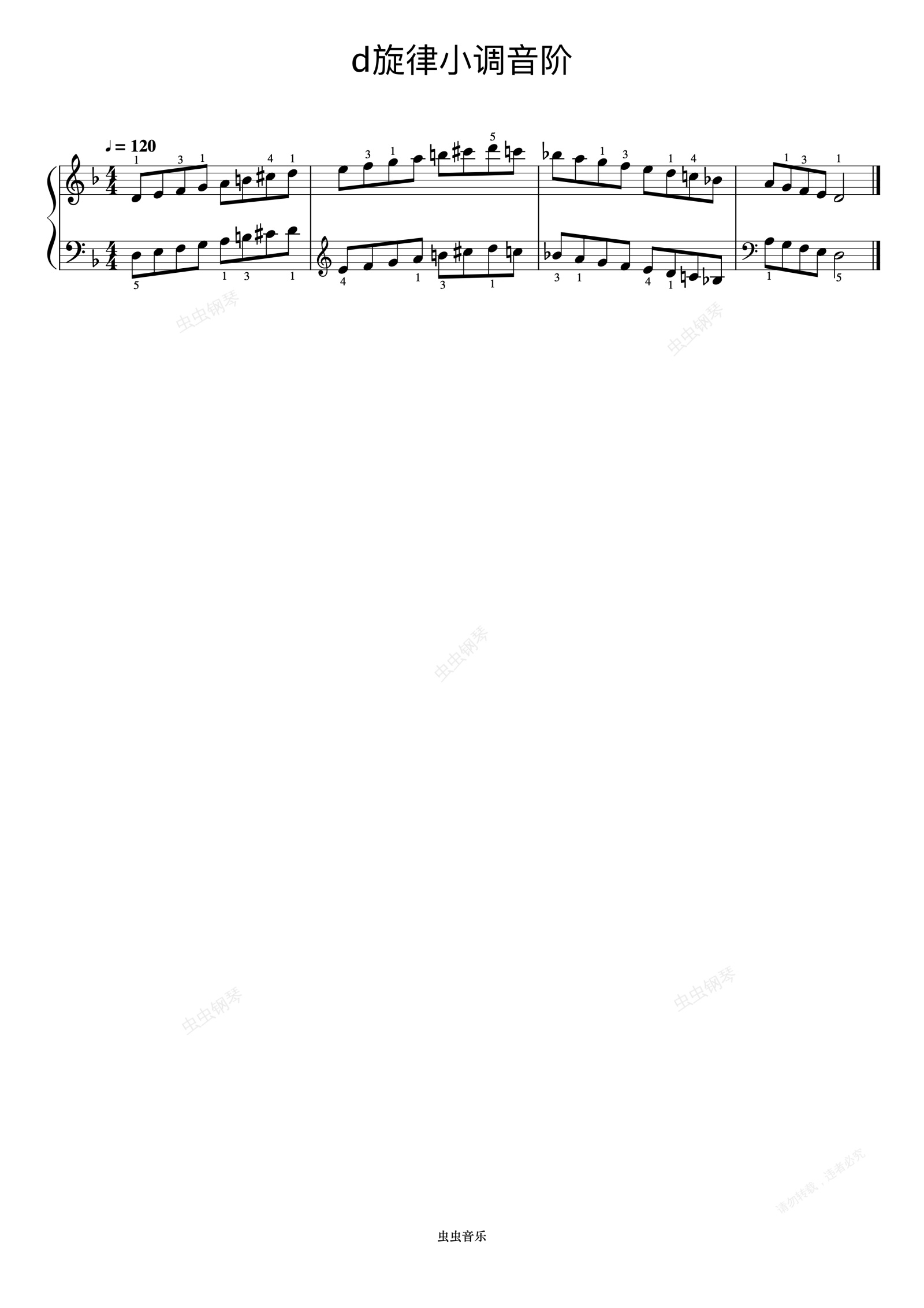 钢琴谱:哈农 No.33-9 d旋律小调音阶