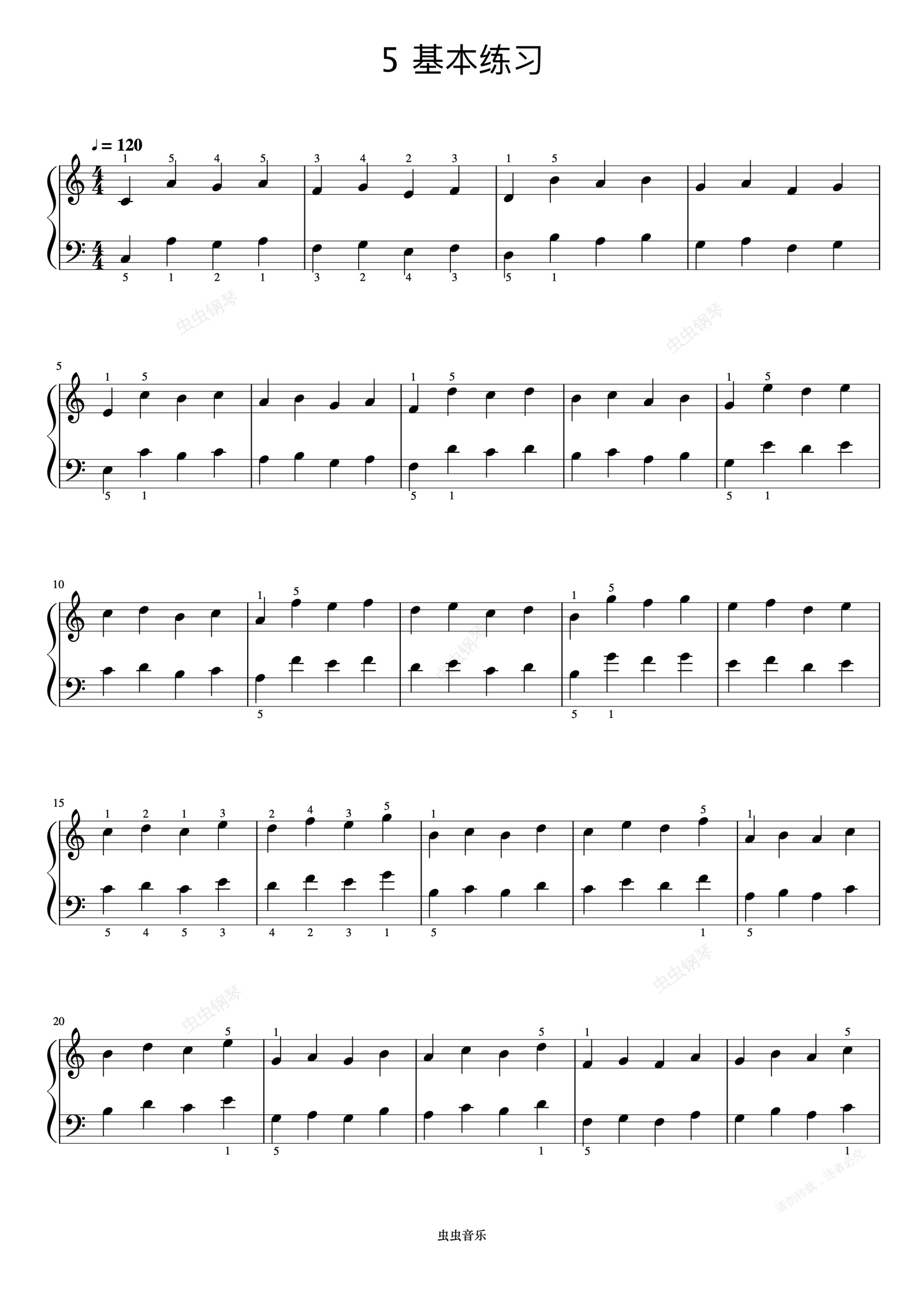 钢琴谱:哈农 NO.5-1 基本练习