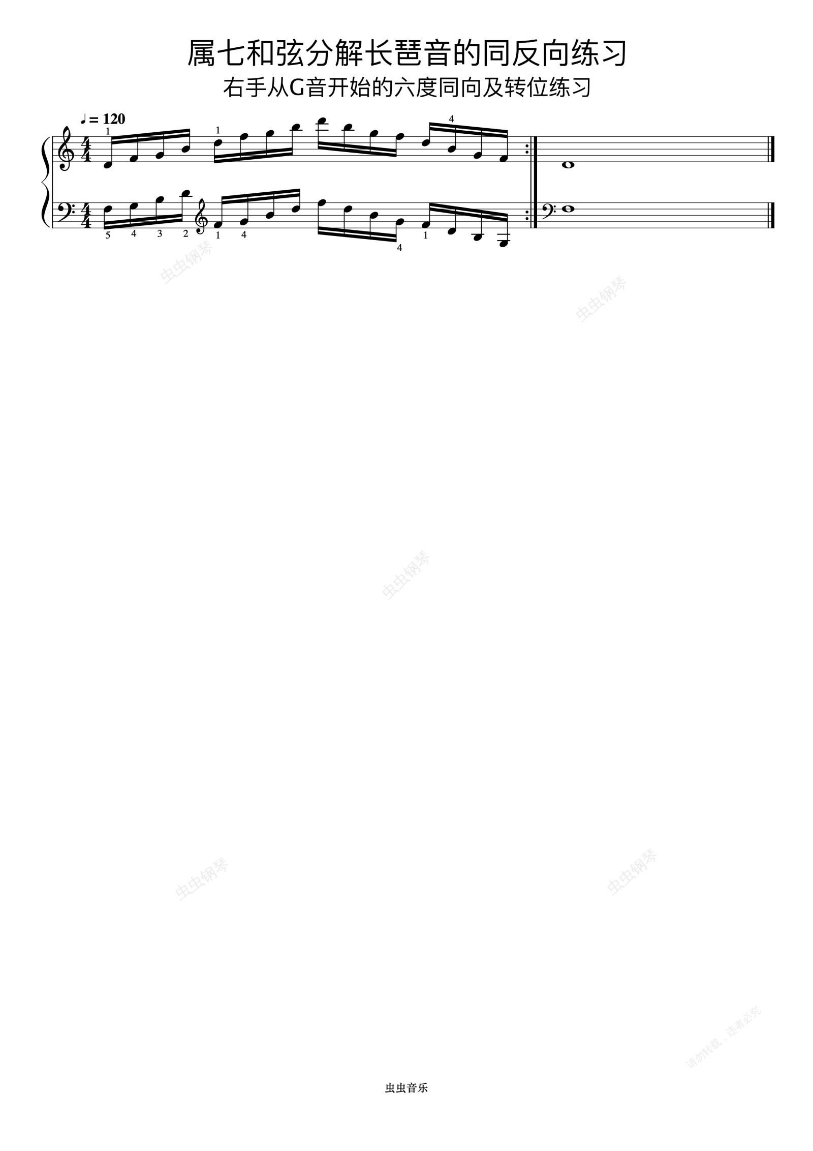 钢琴谱:属七和弦分解长琶音的同反向练习03《什密特钢琴手指练习》