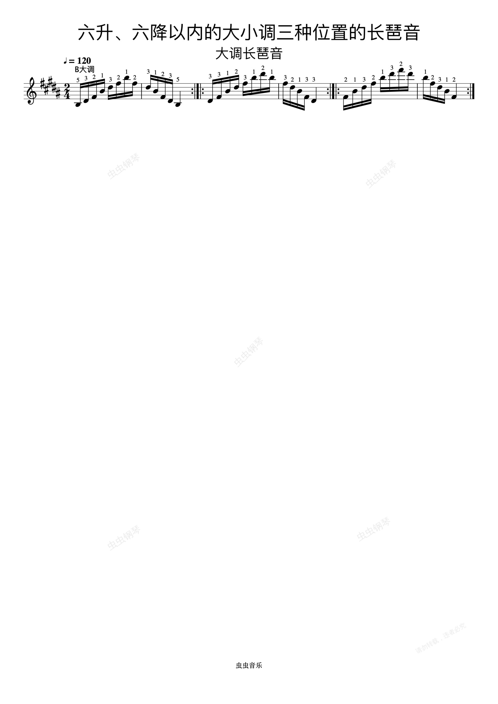 钢琴谱:六升、六降以内的大小调三种位置的长琶音06《什密特钢琴手指练习》