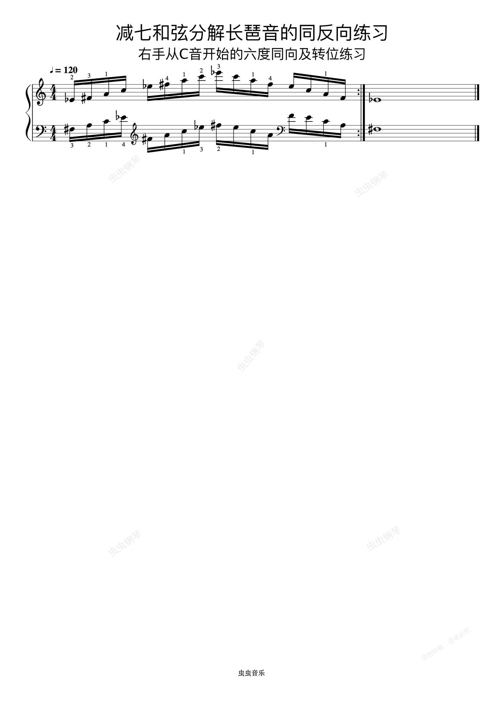 钢琴谱:减七和弦分解长琶音的同反向练习02《什密特钢琴手指练习》